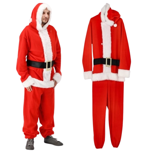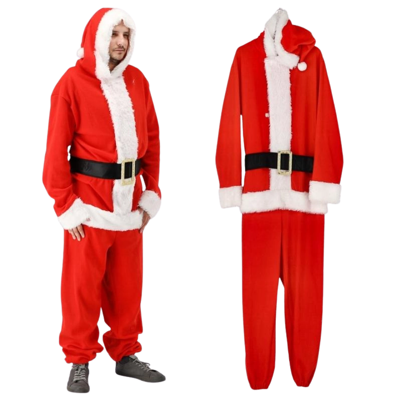 Een stijlvol en praktisch Santa Claus kostuum dat je in een oogwenk aantrekt. Dankzij de eendelige snit zit het heerlijk, knelt het niet en biedt het maximale bewegingsvrijheid. De rode uitvoering met witte pluizige biezen en decoratieve riem zorgt voor een authentieke kerstsfeer bij elke gelegenheid.