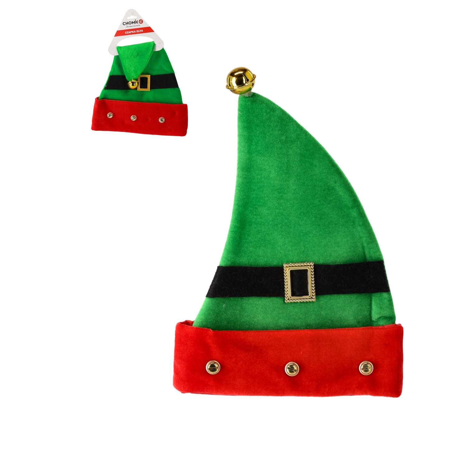 Verlicht de feestelijke sfeer met deze stijlvolle elfenmuts! Gemaakt van een zachte stof voor comfort de hele dag, afgewerkt met een contrasterende rand, riem met gesp en klingelende belletjes. Perfect voor feestjes, optredens en familiebijeenkomsten. Comfortabel materiaal, one size voor volwassenen en opvallend kerstdesign zorgen ervoor dat je niet over het hoofd wordt gezien.
