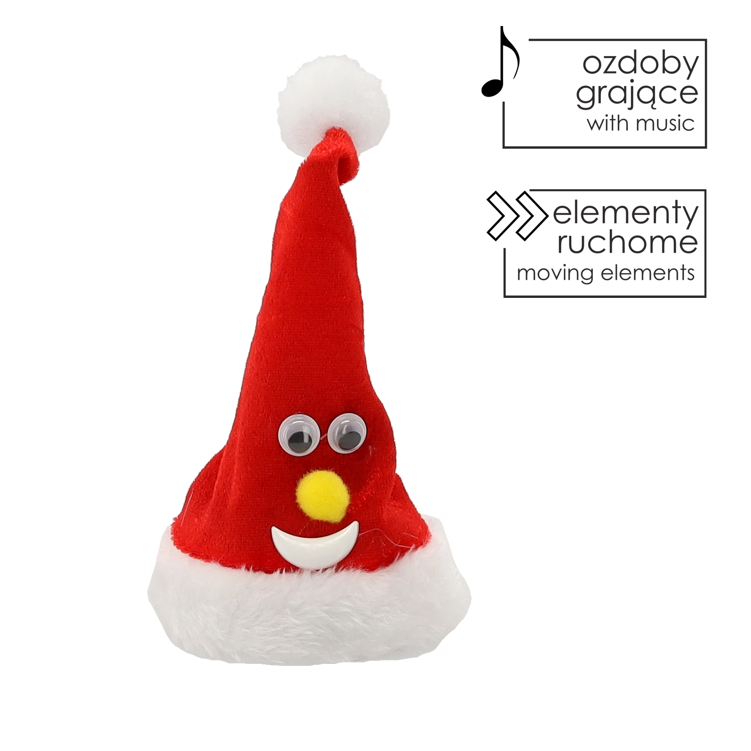 Verhelder de feestdagen met deze bewegende kerstman-kerstmuts van 13 cm hoog, die bij inschakelen danst en vrolijke geluiden maakt. Dankzij de batterijvoeding plaats je hem eenvoudig overal zonder kabels – op tafel, een plank of onder de kerstboom. Het aangename materiaal en de compacte afmetingen maken het de ideale decoratie om een magische kerstsfeer te creëren.