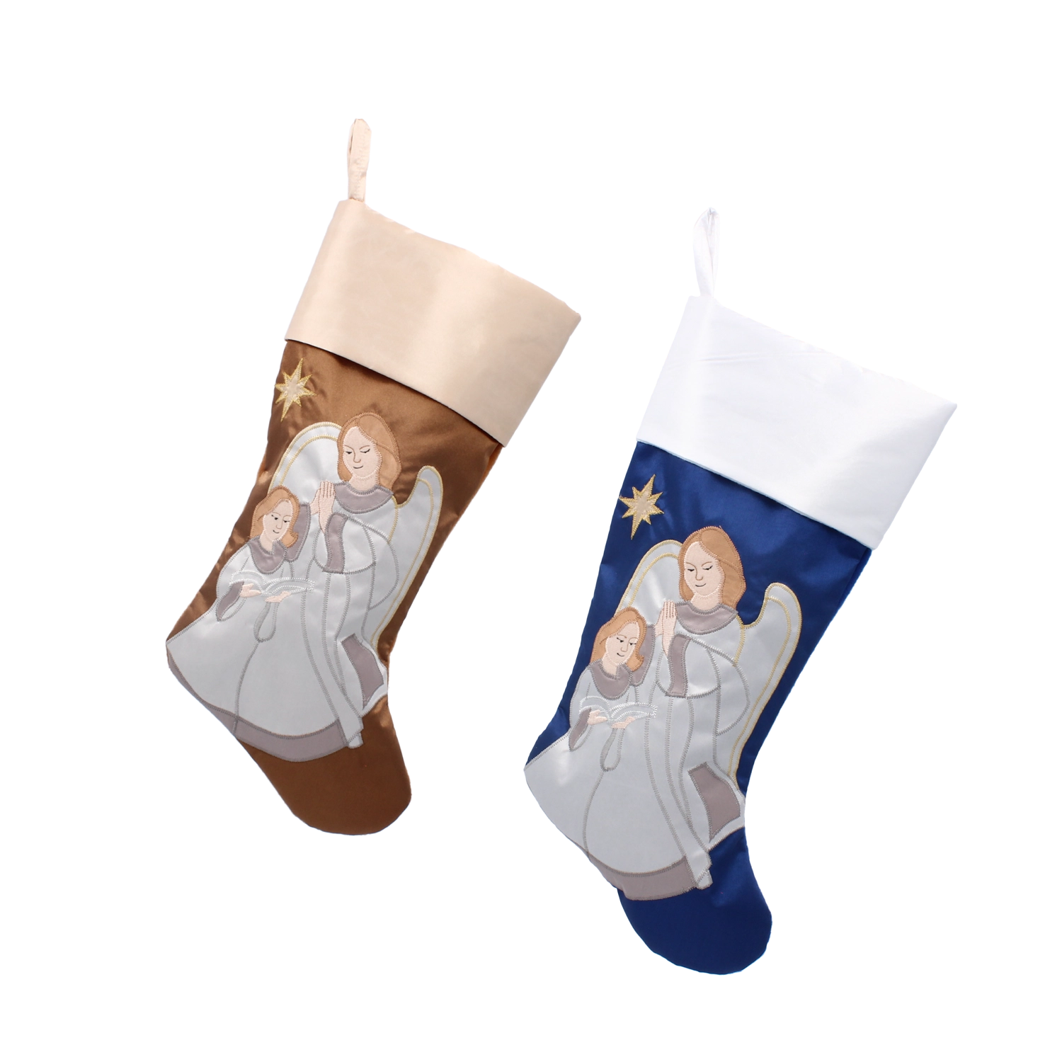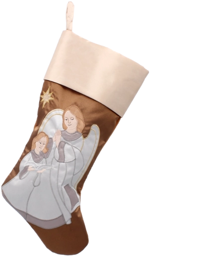 Creëer thuis de echte feestelijke sfeer met een elegante kerstsok versierd met engelen. Hoogwaardige textiele afwerking, zorgvuldige applicaties en een zachte stof zorgen voor een lange levensduur en een prachtige uitstraling, seizoen na seizoen. De praktische lus maakt eenvoudig ophangen aan schouw, balustrade of haak mogelijk.