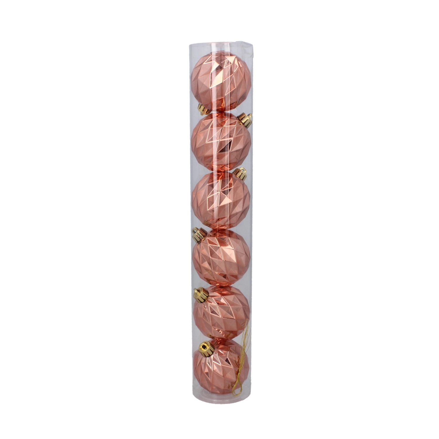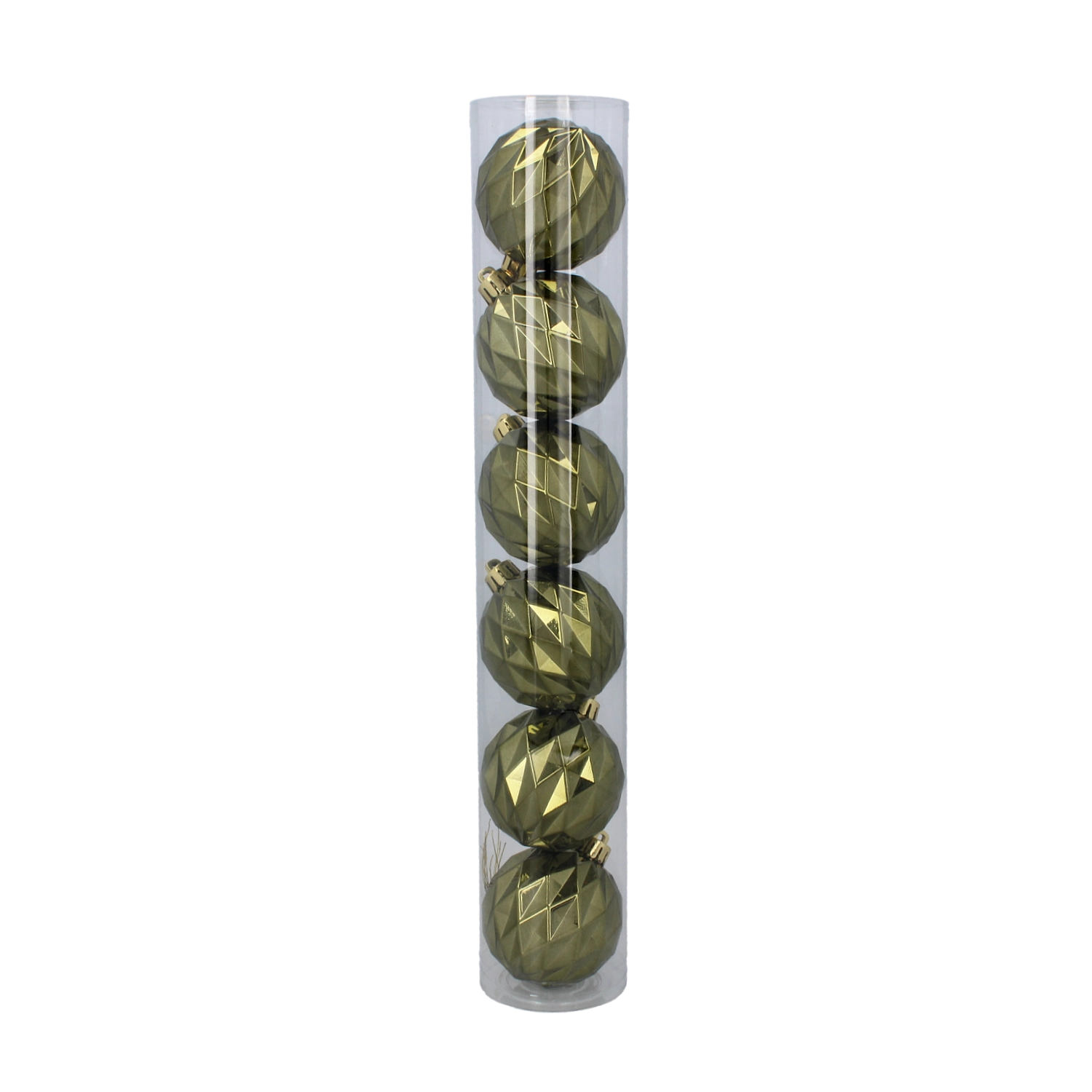Stijlvolle set van 6 glanzende kerstballen met een diameter van 6 cm die je boom een elegante, moderne look geeft. Drie verfijnde kleuren – olijf, koper en grafiet – combineren gemakkelijk met natuurlijke materialen, metalen accenten en traditionele decoraties.