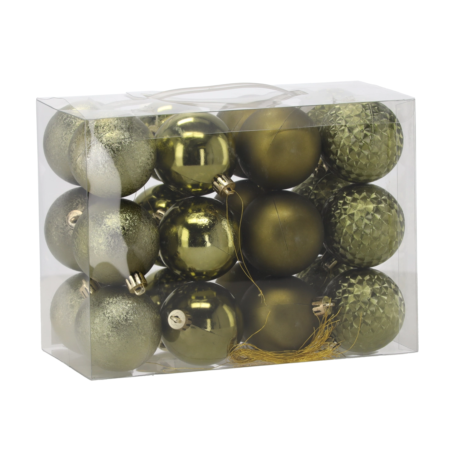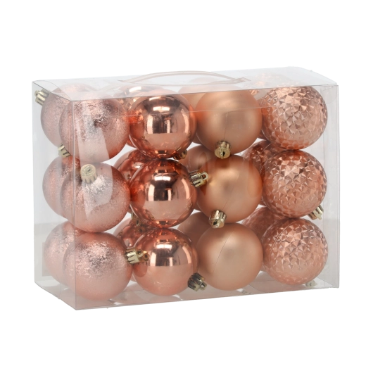Set van kerstballen 6 cm, 24 stuks – olijf, koper en grafiet, onbreekbare plastic versieringen
