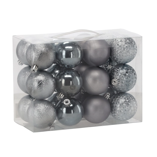 Dankzij het duurzame plastic zijn de versieringen licht, veilig en minder gevoelig voor beschadiging. De mix van afwerkingen brengt in je decor glans, subtiele matte accenten, opvallende glitter en gefaccetteerde reflecties, zodat je moeiteloos een professioneel resultaat bereikt.