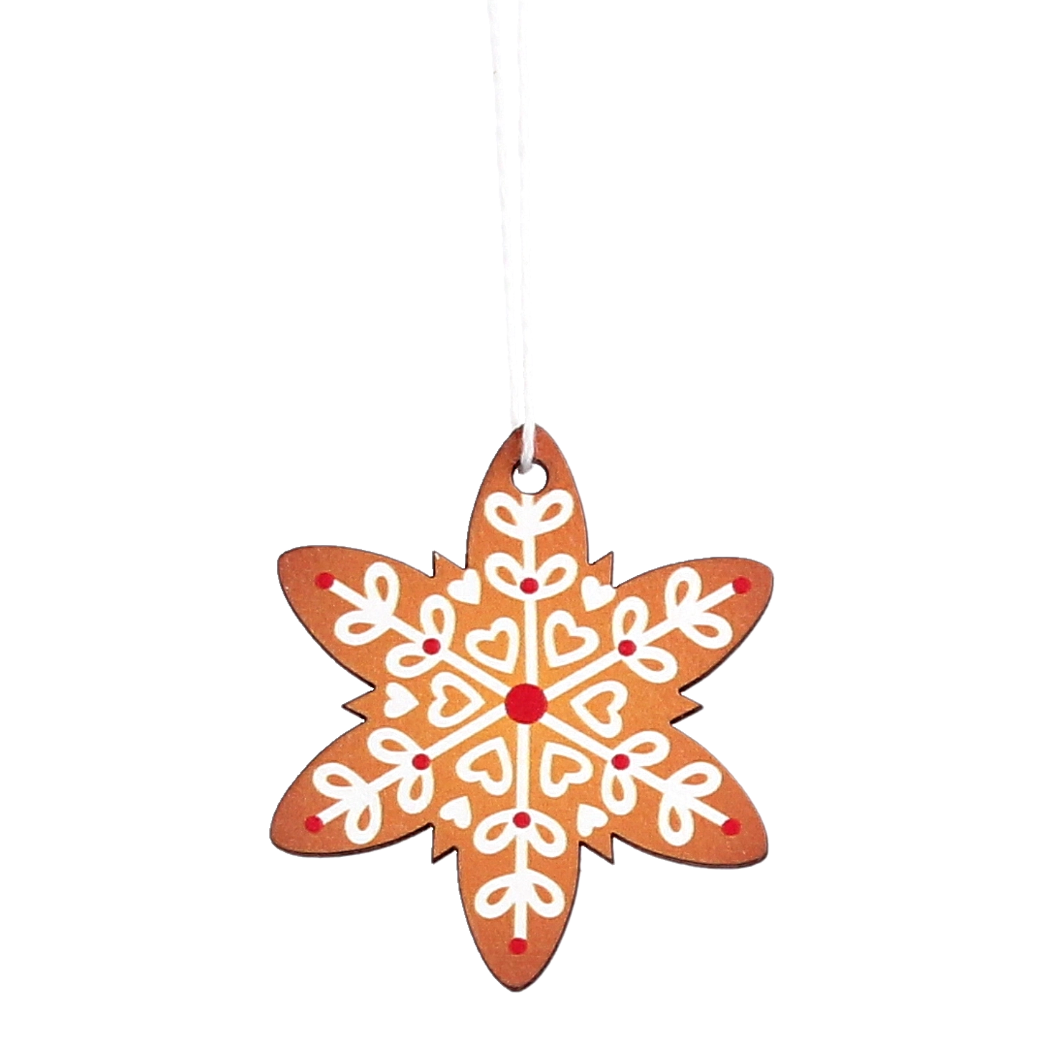 Breng een traditionele kerstsfeer in huis met een set van 18 houten ornamenten in de vorm van sneeuwvlokken. Elk stuk is zorgvuldig uitgesneden uit hoogwaardig hout, heeft een natuurlijke bruine rustieke uitstraling en komt dankzij de wit-rode decoraties prachtig tot zijn recht in de boom, op een guirlande of krans. De ornamenten zijn duurzaam en splintervrij, gemakkelijk op te hangen met een lint en een ideale keuze voor een ecologische en duurzame decoratie.