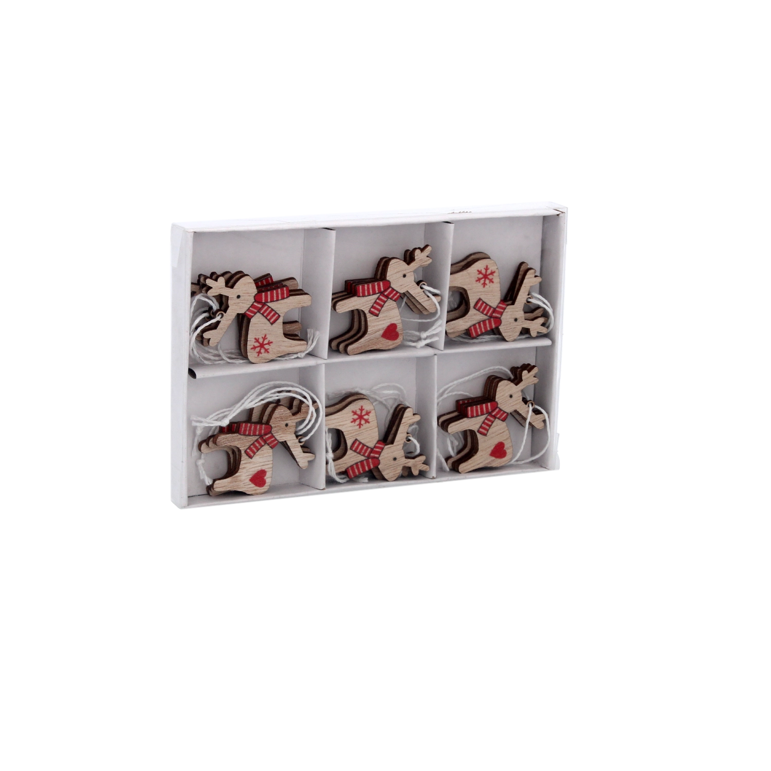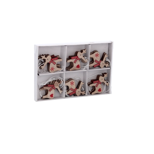 Set van 18 houten kerstversieringen rendieren CHOMIK
