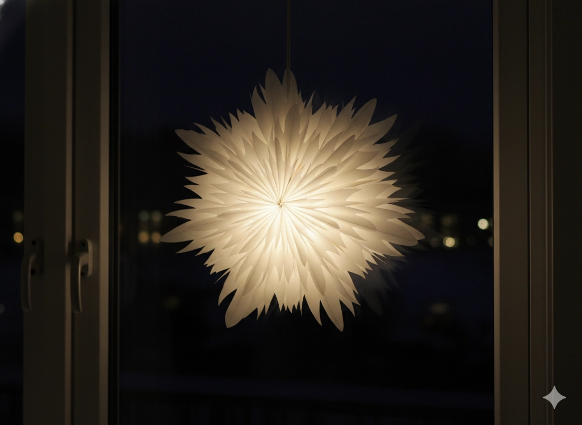 Wit papier verspreidt warm licht prachtig en geeft het interieur een zachte, feestelijke uitstraling – ideaal voor voor het raam, boven de tafel of in de woonkamer.