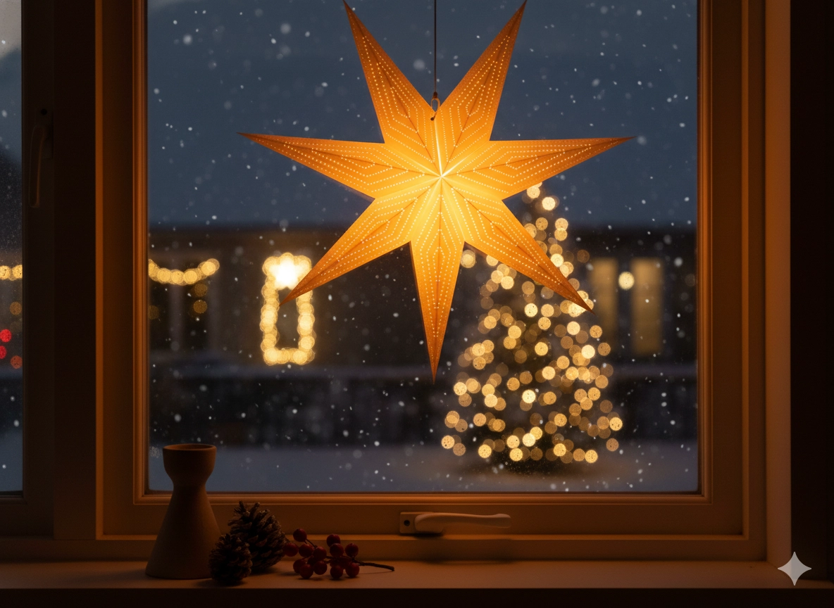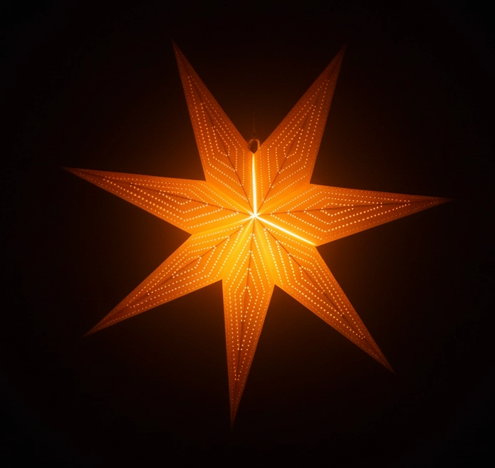 Deze gouden papieren ster valt op door het elegante zevenpuntige design en de subtiele perforatie, waardoor het licht verandert in een betoverend schaduwspel. Past perfect in zowel klassieke als moderne interieurs en wordt een opvallend decoratief element tijdens Kerst en het winterseizoen.