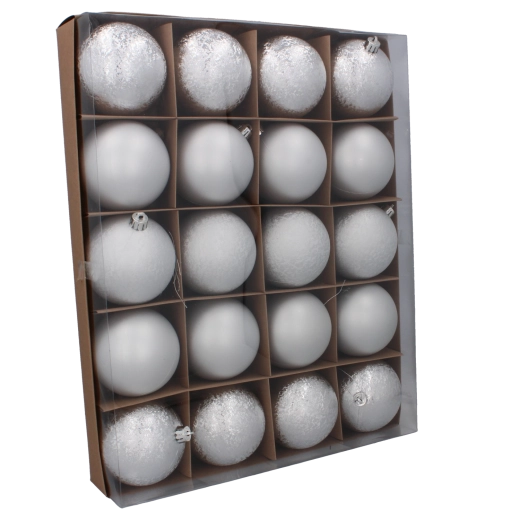 Deze veelzijdige set bevat 20 ballen: 8× mat, 4× gestructureerd en 8× glanzend. Dankzij de doordachte verdeling van afwerkingen creëer je gemakkelijk diepte en sprankeling in de boom, in kransen en in decoratieve arrangementen. De kleuren rood, goud en zilver harmoniëren prachtig en versterken de klassieke kerstsfeer.