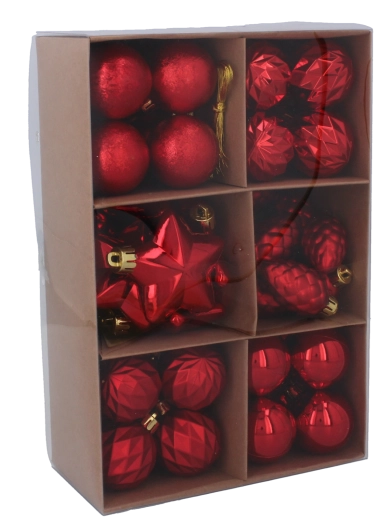 Set van 47 kerstversieringen in rood, goud en zilver (4–6 cm)