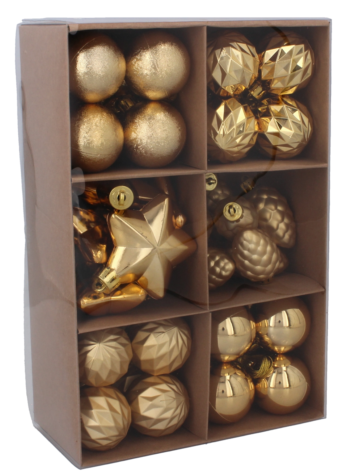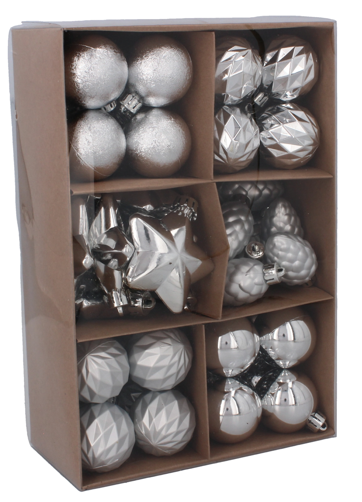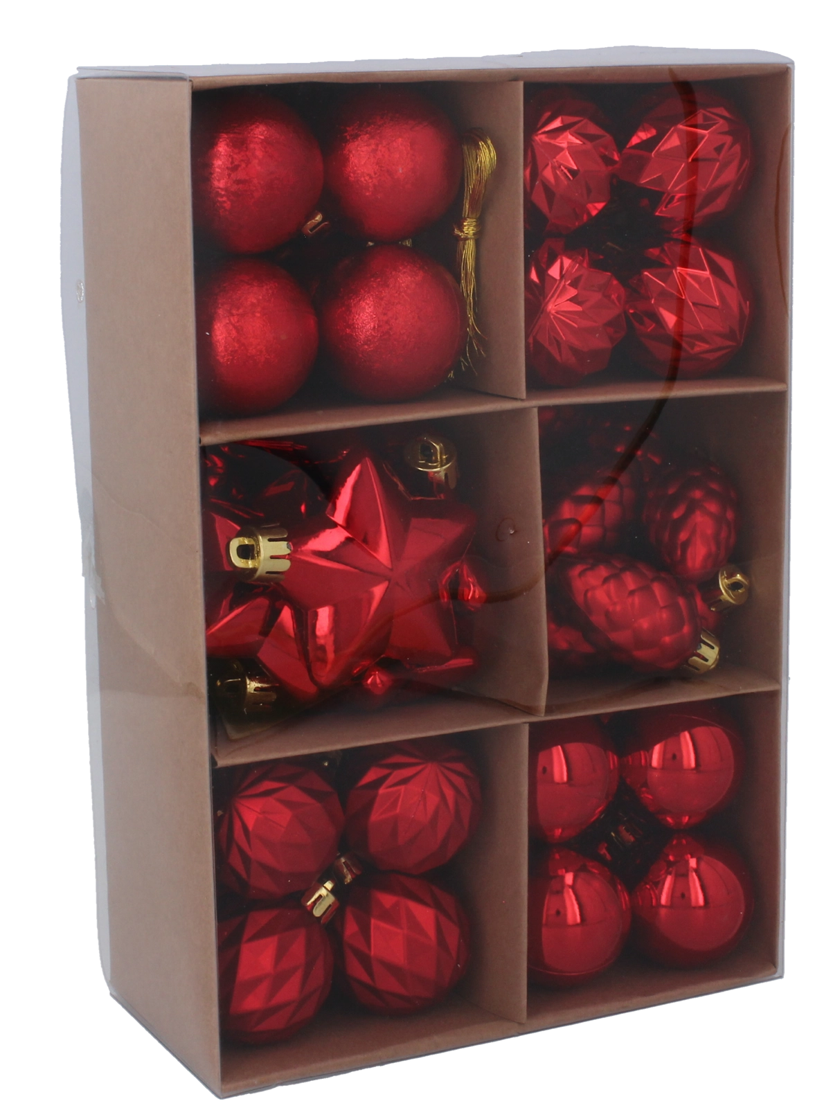 De ornamenten zijn gemaakt van onbreekbaar, licht plastic, zodat ze eenvoudig op te hangen zijn en ideaal voor gebruik binnenshuis. Geïntegreerde oogjes en koordjes zorgen voor een snelle en veilige bevestiging aan boomtakken, guirlandes of kransen.