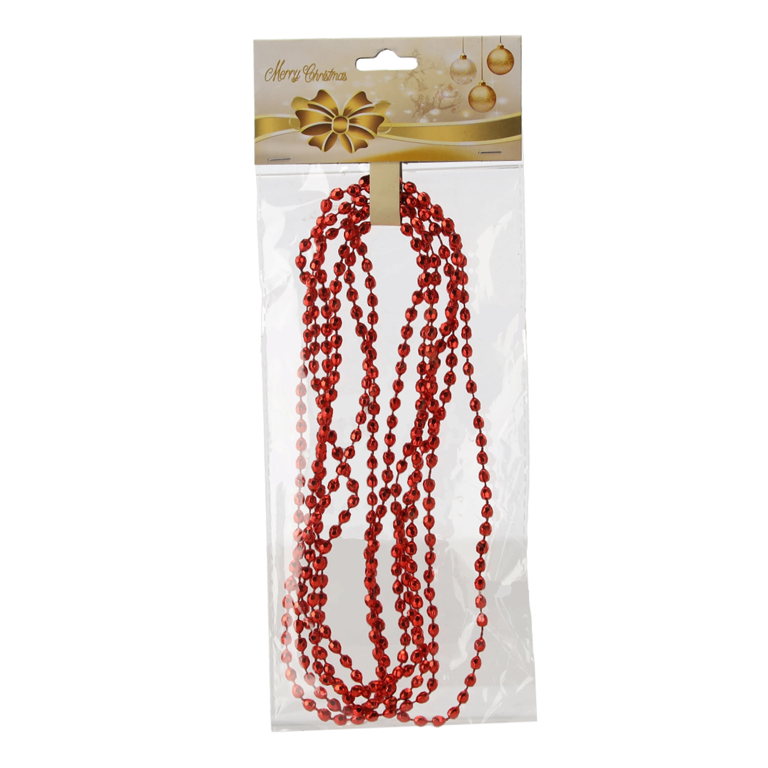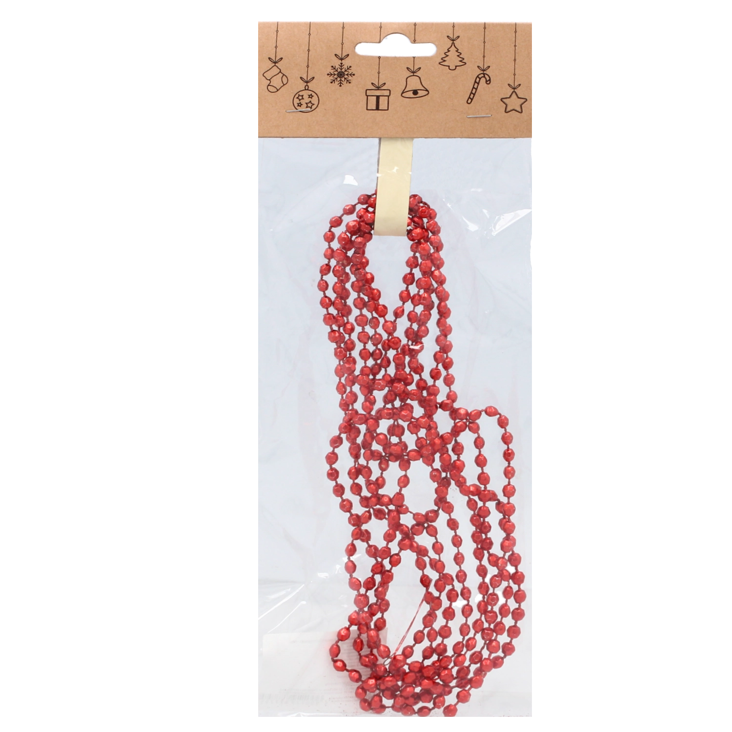 Een elegante kralen-guirlande van 2,7 m die je interieur en boom een feestelijke glans geeft. Lichtgewicht kunststof kralen met een metallic afwerking in rood, goud en zilver weerkaatsen prachtig het licht, zijn makkelijk te vormen en snel te stylen op takken, kransen of balustrades.