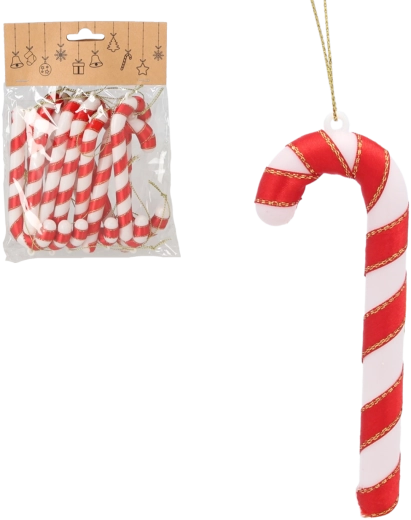 Creëer thuis de echte feestelijke sfeer met een set van 12 zuurstok-ornamenten van 12 cm lang. Het duurzame plastic garandeert lange levensduur en herbruikbaarheid, terwijl de klassieke rood-witte strepen je decoratie een traditioneel tintje geven. Dankzij de universele toepassing hang je ze eenvoudig in de boom, in guirlandes en kransen – comfortabel met de meegeleverde koordjes.