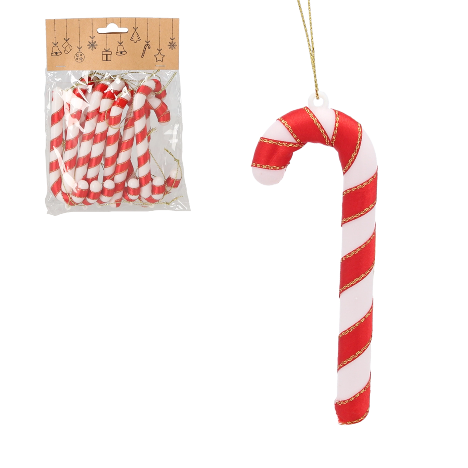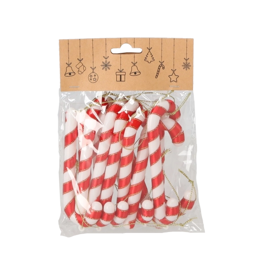Traditionele decoratie in de vorm van zuurstokken hoort bij Kerst net zo vanzelfsprekend als lichtjes en de geur van koekjes. Deze set van 12 stuks in rood-wit combineert een klassieke look met een praktische uitvoering – het stevige plastic is licht, veilig en ideaal voor gezinnen met kinderen en huisdieren.