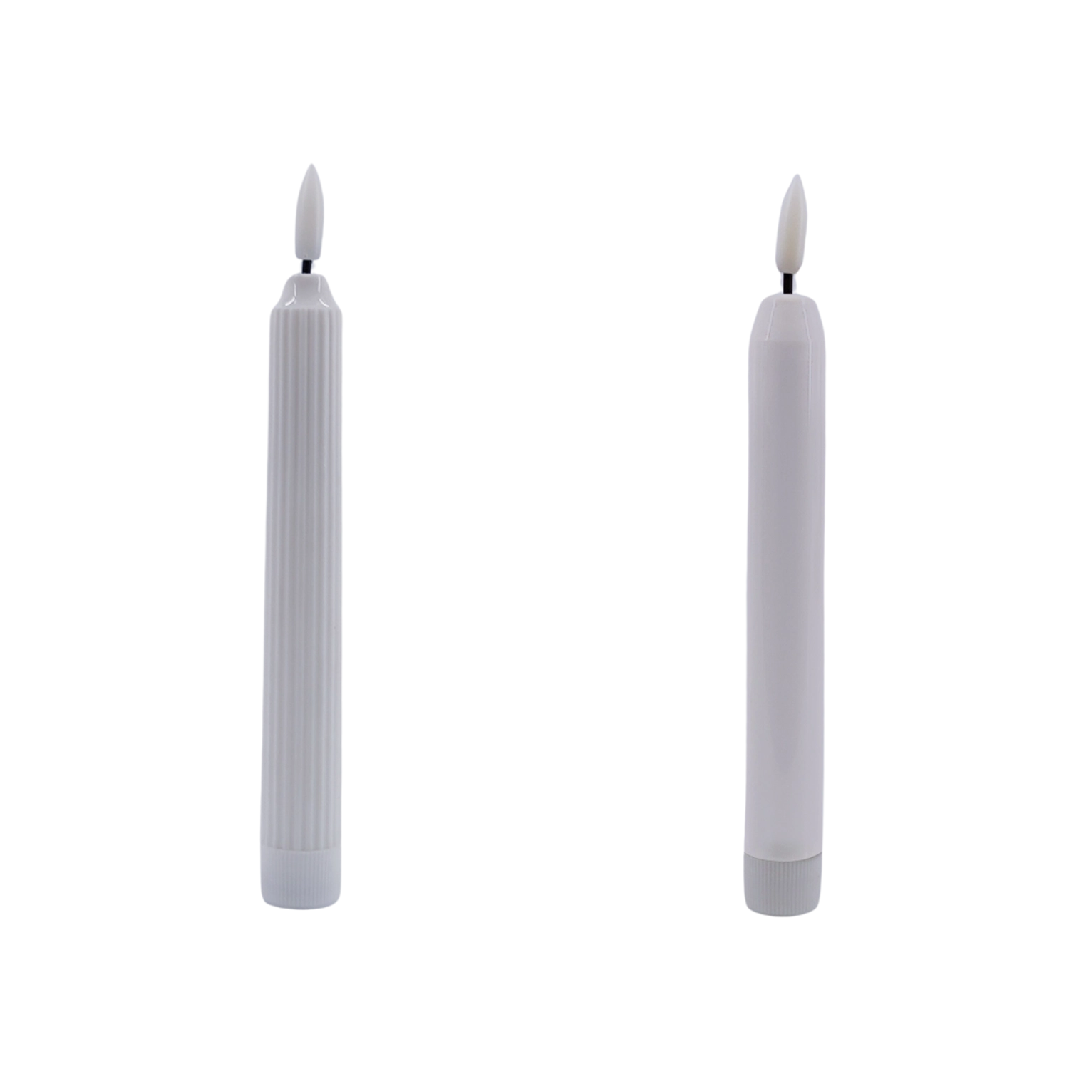 Creëer een gezellige sfeer zonder het risico van een open vlam. Deze elegante LED-kaars van 16,5 cm hoog in witte kleur biedt warm wit licht, wordt gevoed door 2× AA-batterijen en is dankzij de IP20-bescherming ideaal voor gebruik binnenshuis. Verkrijgbaar in een mix van patronen – glad en geribbeld oppervlak.