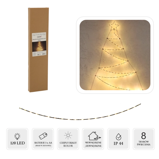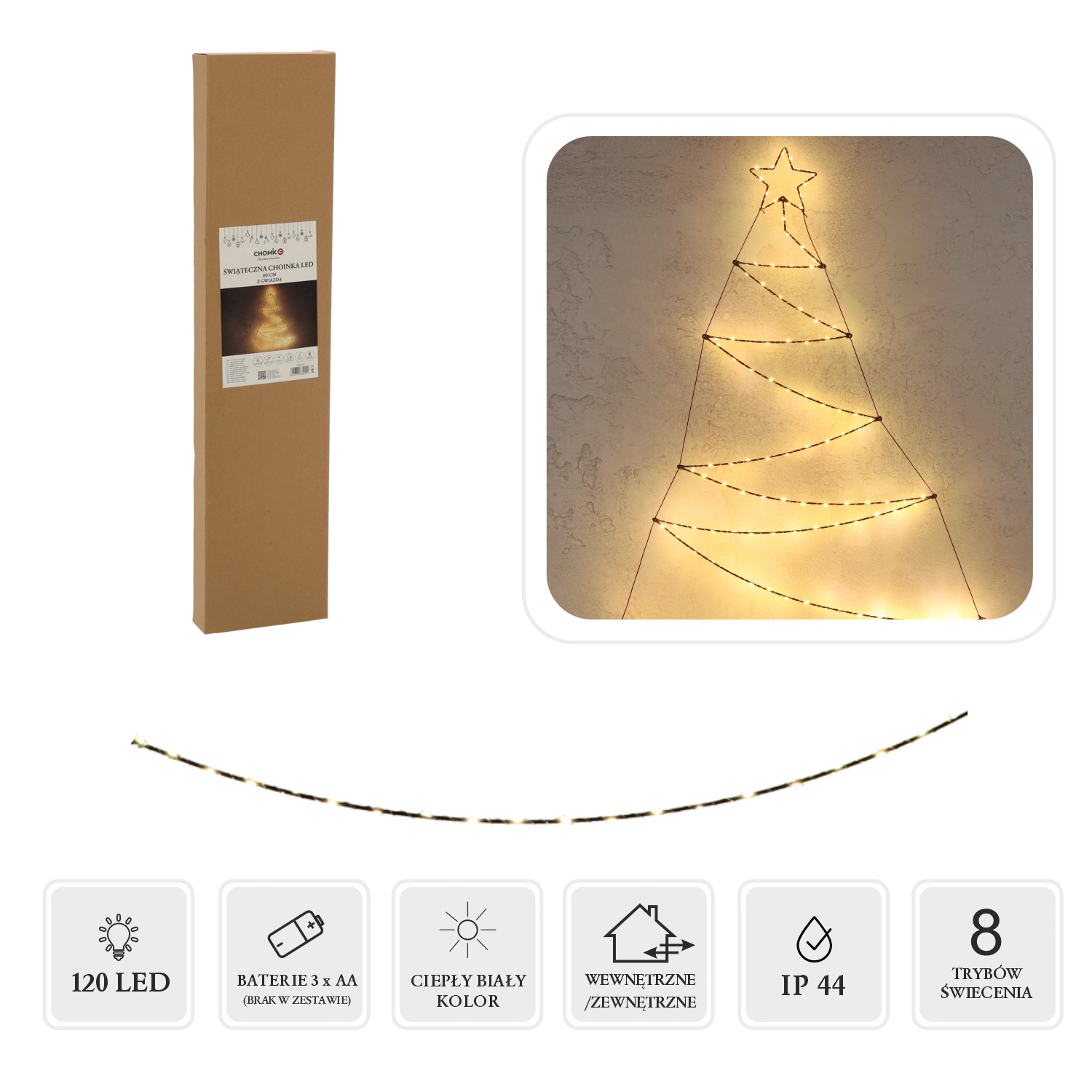 Geef je huis een feestelijke sfeer met een elegante LED-decoratie in de vorm van een boompje van 105 cm hoog. 120 LEDs in warm wit en een stijlvolle ster op de top zorgen voor gezellig licht dat zowel de woonkamer als de kinderkamer verlicht. Dankzij de voeding op 3× AA-batterijen geniet je van plaatsingsvrijheid zonder kabels en tot 8 lichtfuncties voor de perfecte feeststemming.