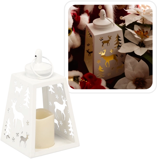 Creëer een prettige sfeer zonder rook en druipende was. Deze witte metalen LED-lantaarn met stijlvol rendiermotief is een uitstekende keuze voor winterse én het hele jaar door decoratie. De kunststof kaars binnenin geeft een zachte warmwitte gloed die rust en comfort oproept.
