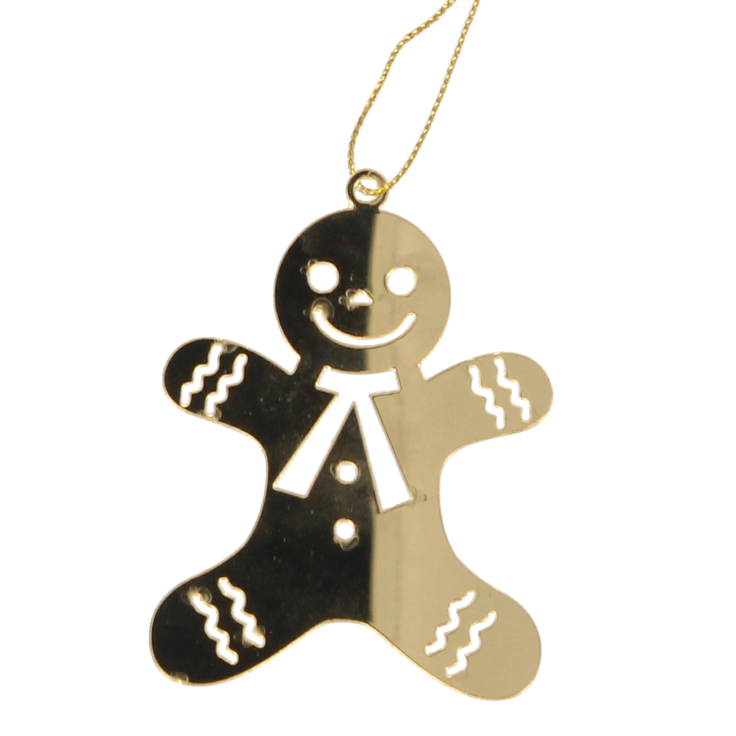 Maak je feestdecor stijlvol af. De gouden peperkoekfiguren schitteren prachtig in het licht van kerstlampjes dankzij het platte metalen ontwerp en de gedetailleerde uitsparingen. Ideaal voor liefhebbers van klassieke motieven in een modern jasje – voor in de boom, krans of feestelijke arrangementen.