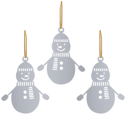 Geef je kerstboom of feestelijke decoraties extra allure met deze elegante set van drie zilverkleurige sneeuwpoppen. Dankzij hoogwaardig kunststof zijn de ornamenten zeer licht en duurzaam, waardoor ze eenvoudig op te hangen zijn en minder snel slijten. De zilveren glans geeft je decor een moderne en feestelijke uitstraling die prachtig weerkaatst in het licht.