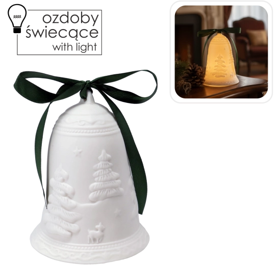 Creëer thuis de juiste feestelijke stemming met deze keramische bel die, zodra het LED-licht aangaat, zacht doorlicht en je interieur een warme, rustgevende toets geeft. Dankzij het ingetogen design met reliëf kerstmotieven past hij perfect in zowel moderne als traditionele arrangementen.