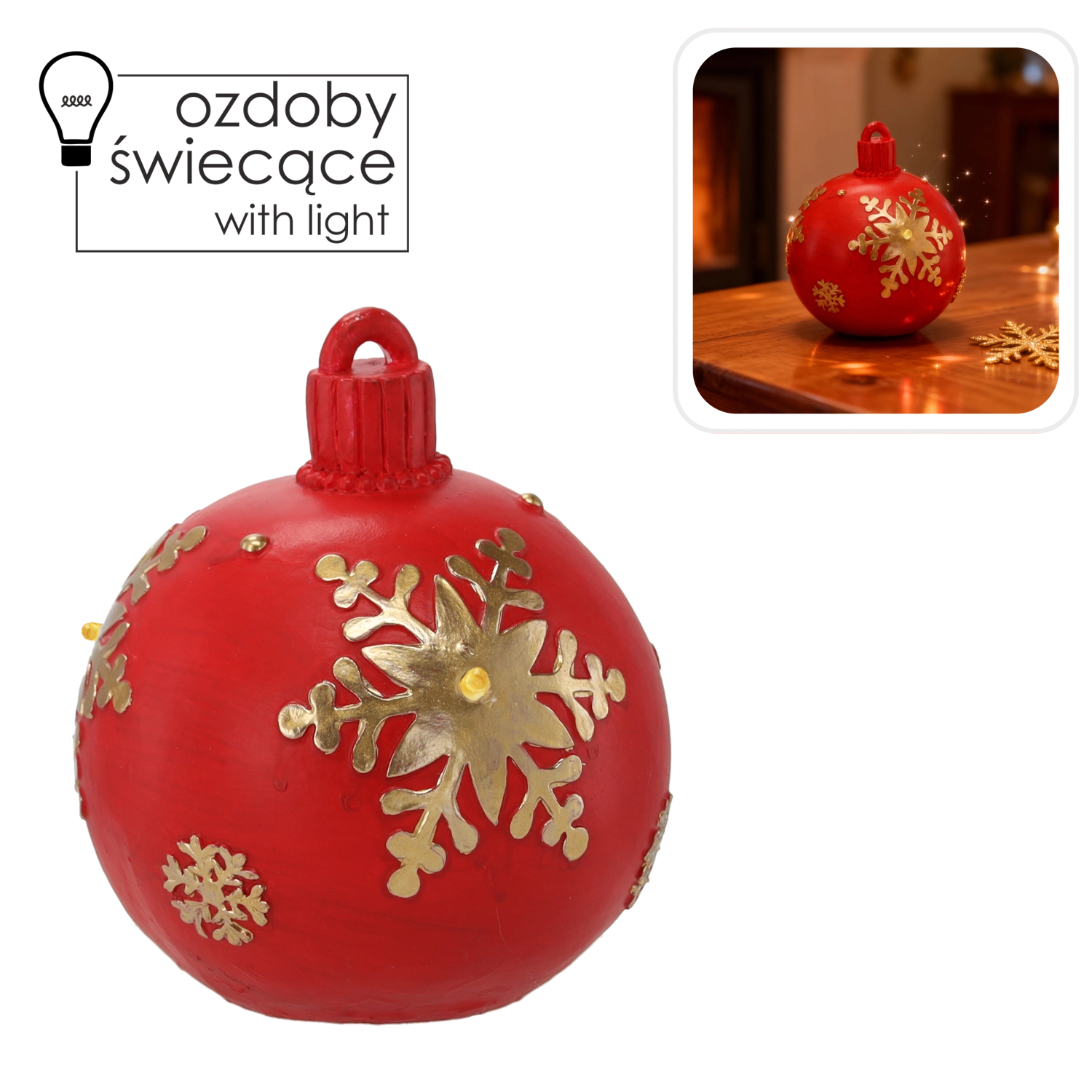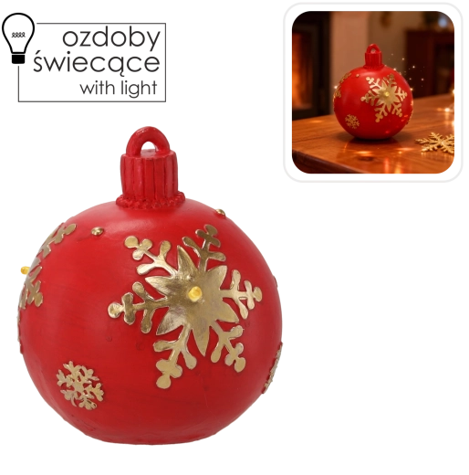 Deze elegante rode kerstbal met geïntegreerde LED’s creëert magisch, zacht licht dat de gouden details benadrukt en de kerstsfeer versterkt. Dankzij de hoogwaardige afwerking en tijdloos design is hij eenvoudig te combineren met andere decoraties.