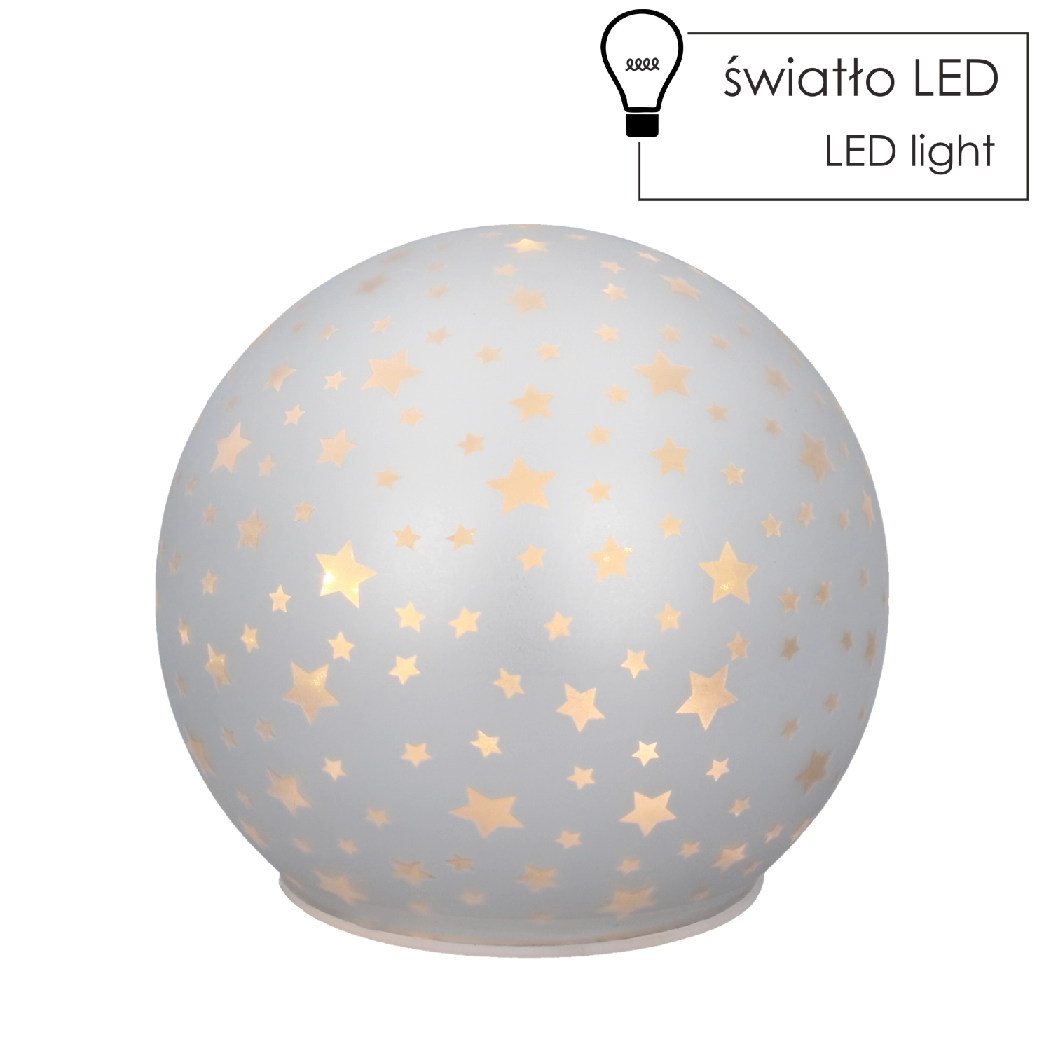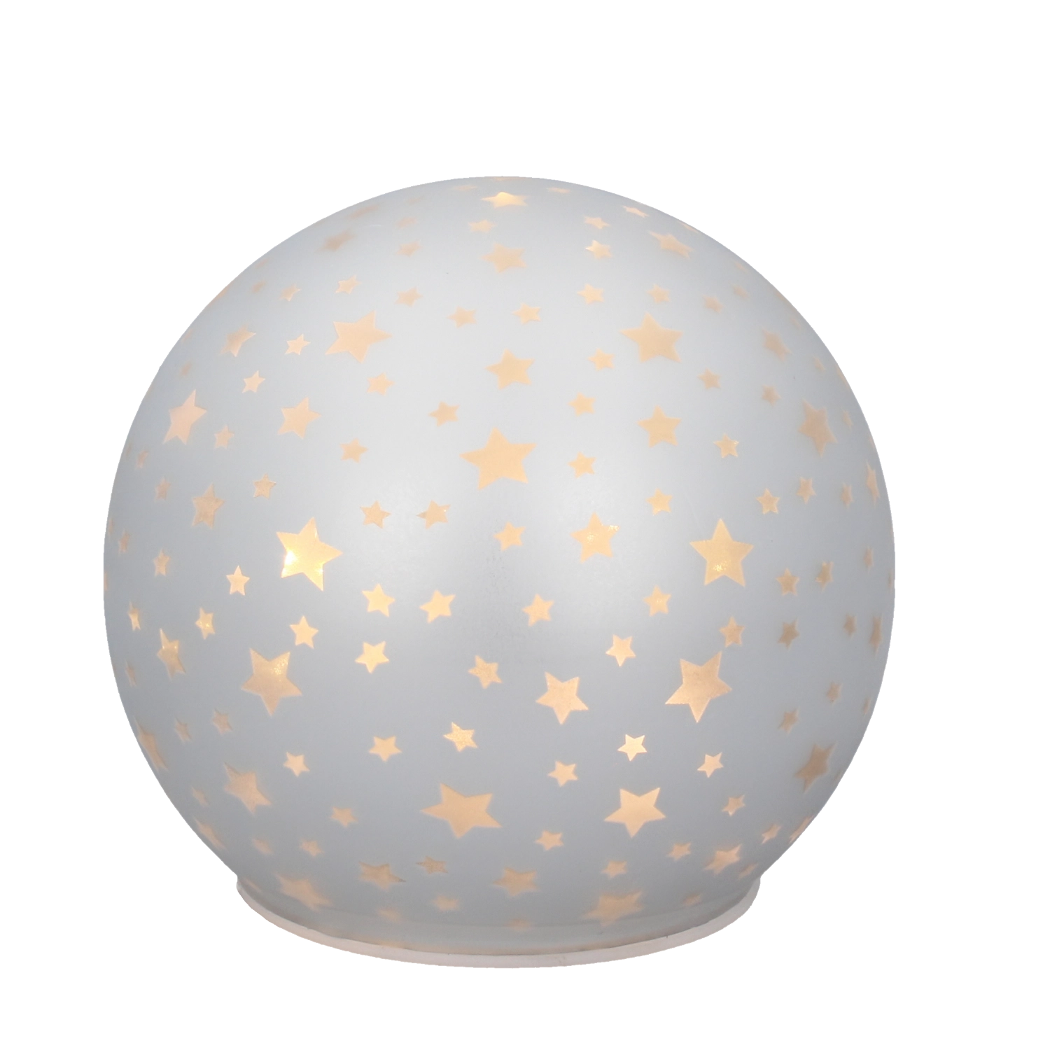 Deze decoratieve glazen bol met sterrenmotief is een stijlvolle accessoire die in elke kamer zacht ambient licht brengt. De geïntegreerde leds besparen energie en creëren een aangenaam visueel effect dat perfect past in de woonkamer, slaapkamer of kinderkamer.