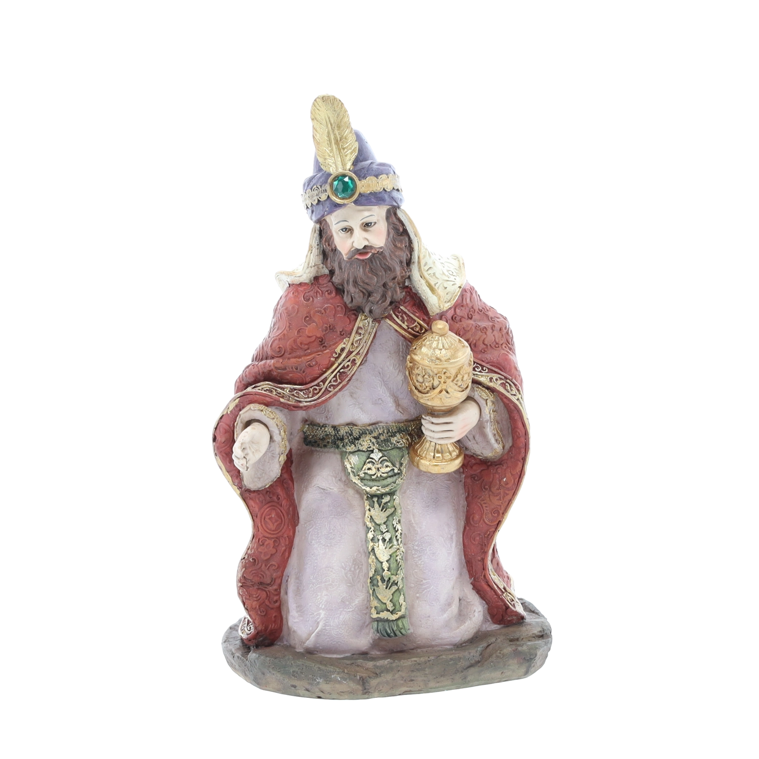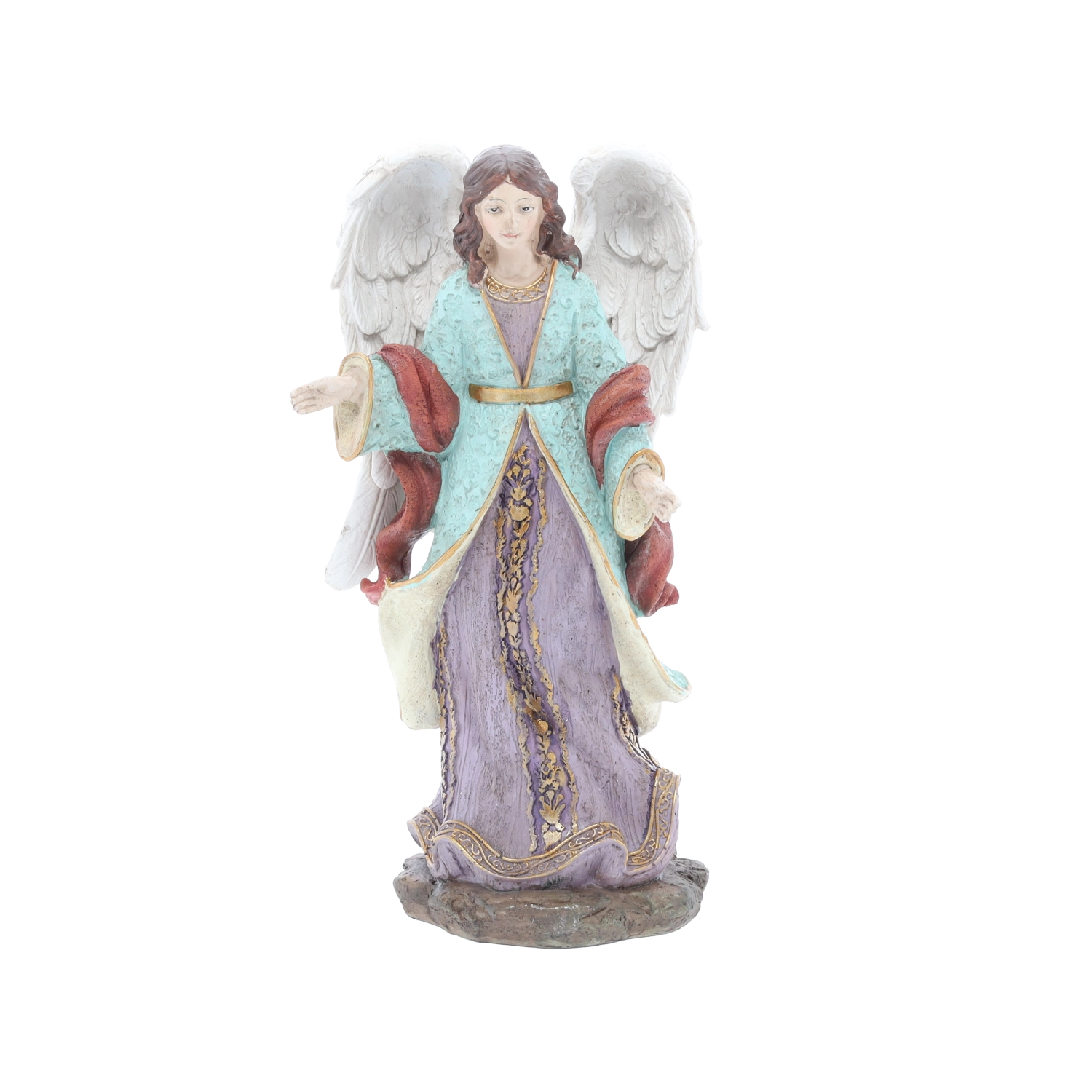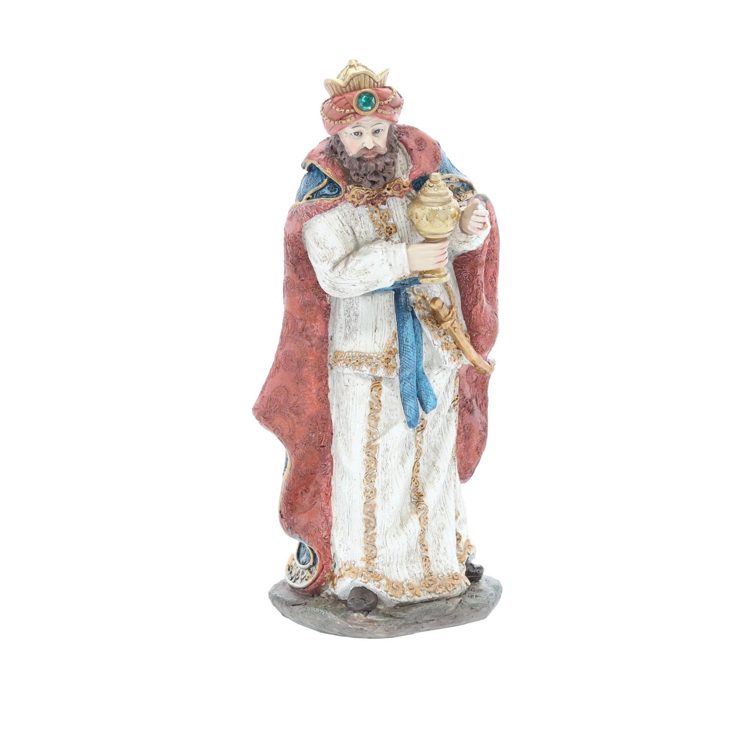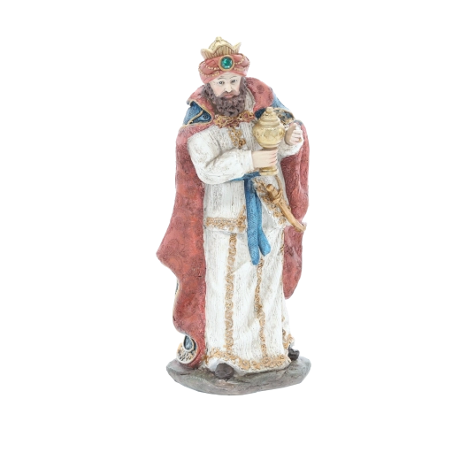 Deze complete set kerststalfiguren omvat de Heilige Familie, drie koningen, een engel, een herder en dieren (een os, schaap, ezel en kameel) – allemaal in bij elkaar passende kleuren en met een rijke textuur. Polyresin garandeert een lange levensduur, kleurstabiliteit en een elegante uitstraling.