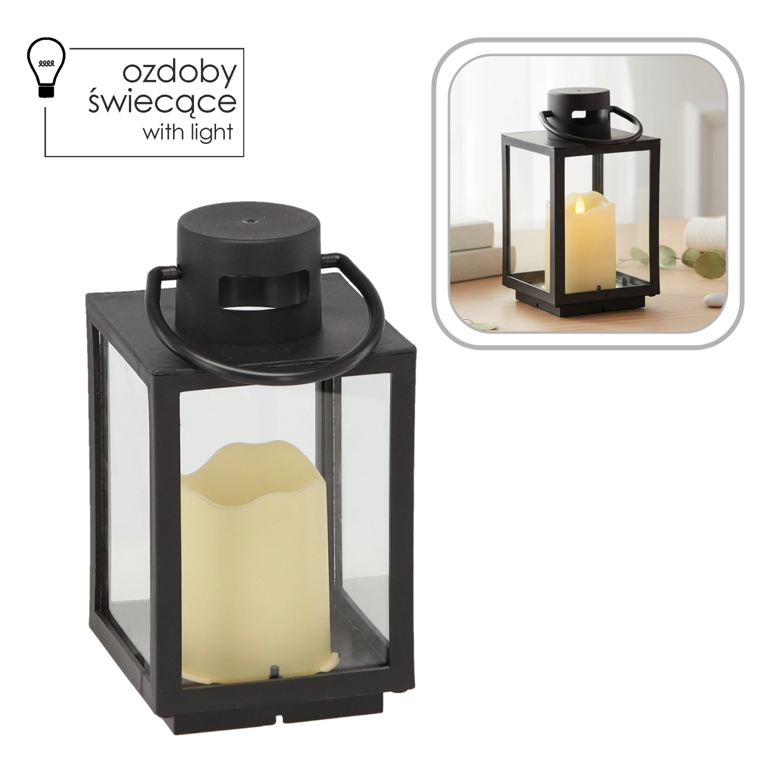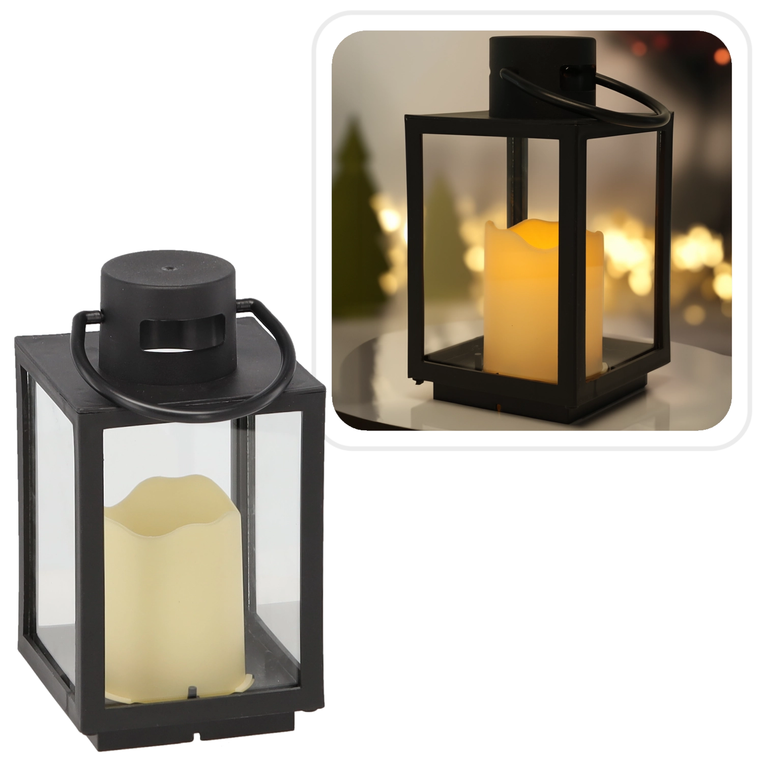 De crèmekleurige LED-kaars in de lantaarn creëert een warme gloed zonder rook, roet of brandgevaar – ideaal voor rustige winteravonden en dagelijkse decoratie.