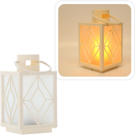 Versier je huis met een zachte, warme gloed. De witte decoratieve lantaarn met matte inzetpanelen en geometrisch motief zorgt voor prettig diffuus licht dat aan een kaars doet denken, maar zonder rook en was. Ideaal voor adventsdecoratie, avondlijke ontspanning of een feestelijk gedekte tafel.