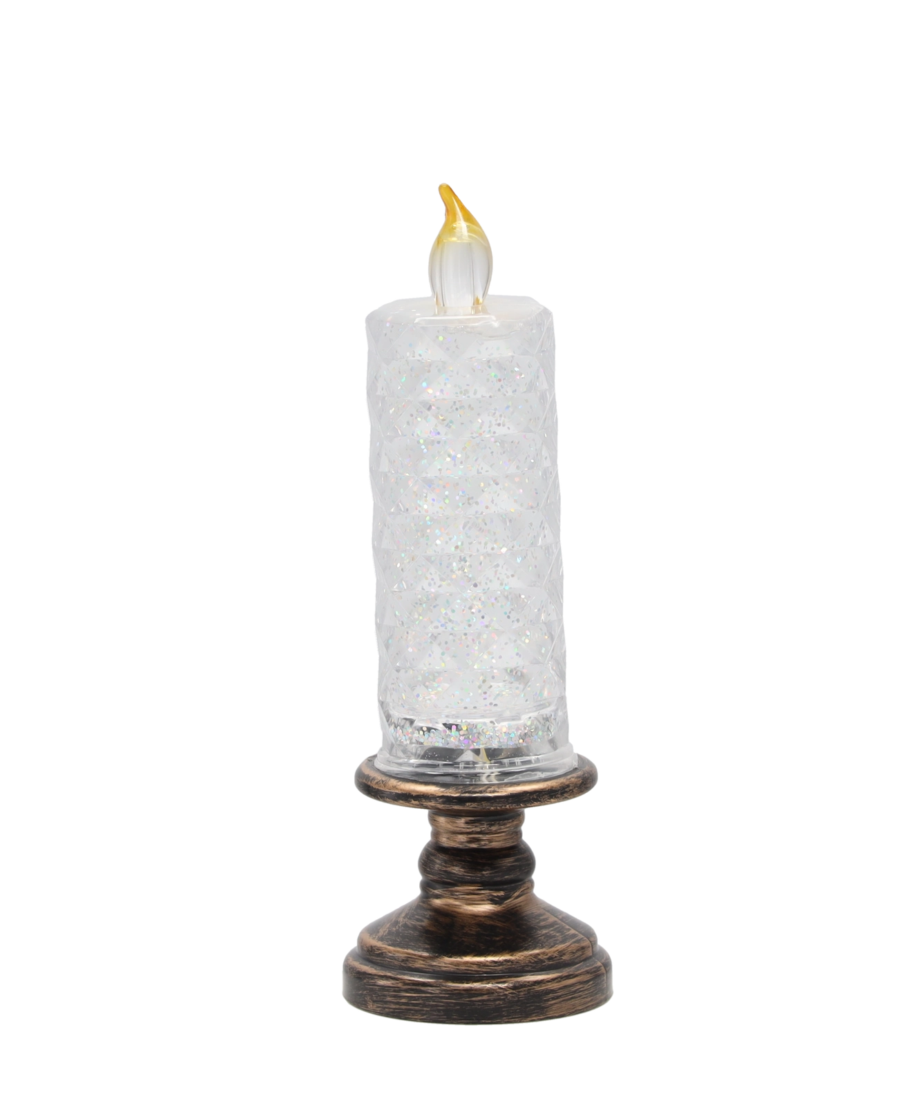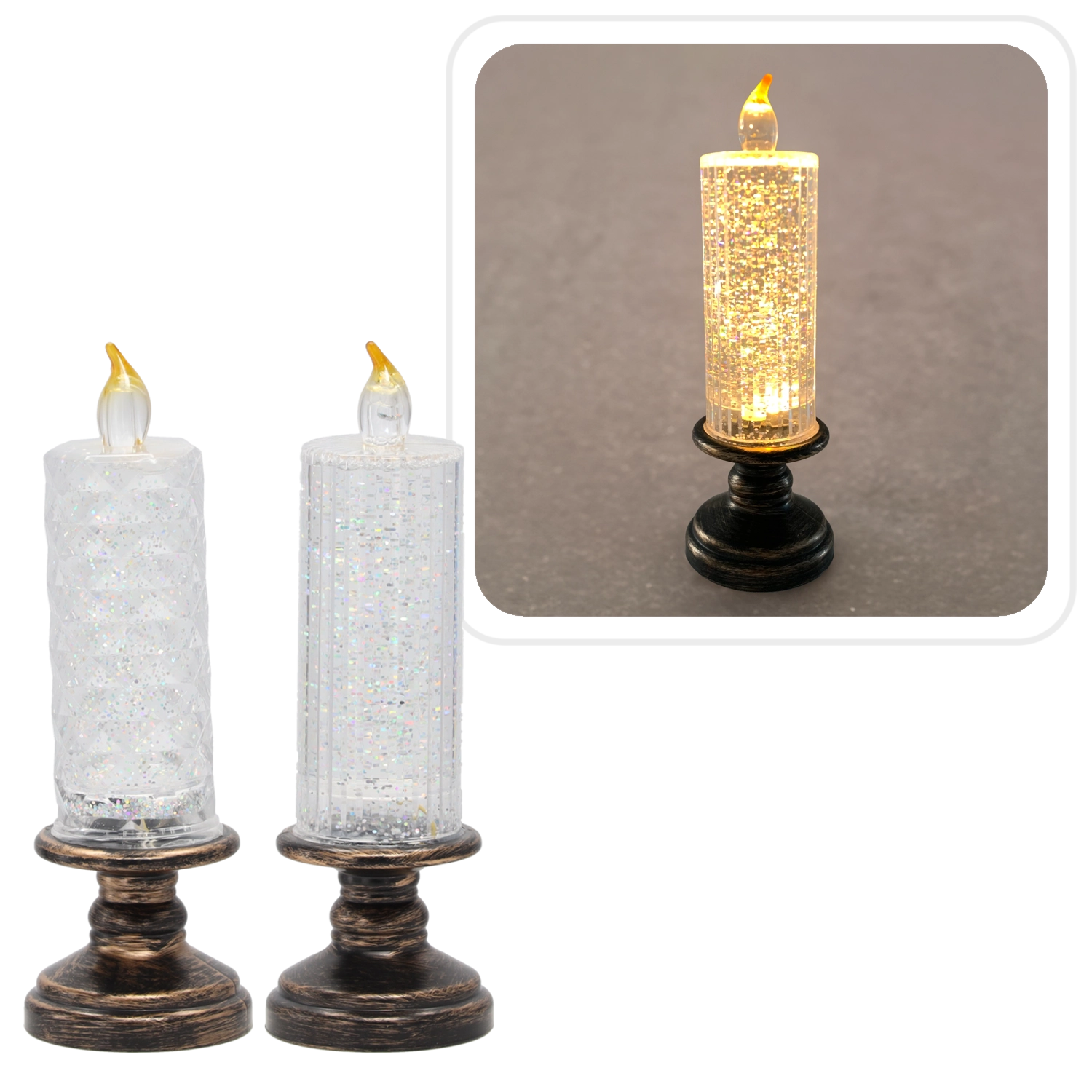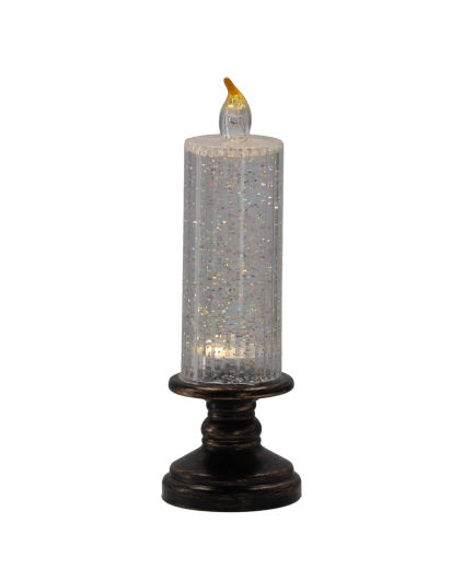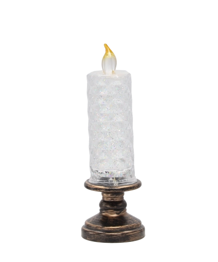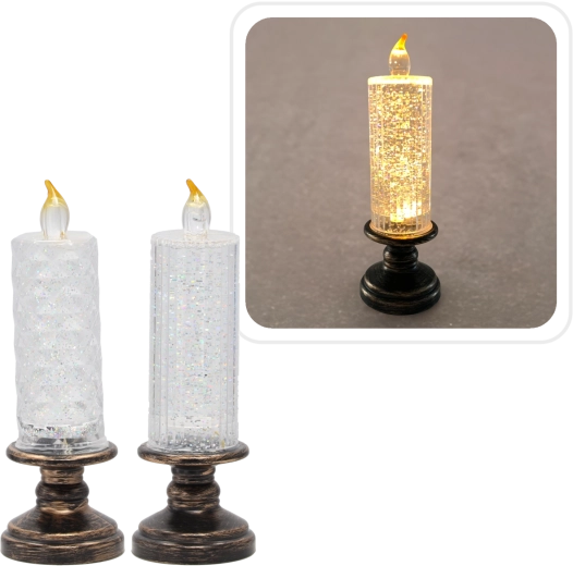 Deze elegante LED-kaars combineert de look van een klassieke kaars met moderne LED-verlichting. Het transparante lichaam met glitters licht op bij inschakeling en creëert een betoverend fonkeleffect dat je interieur een feestelijke én het hele jaar door charme geeft. Dankzij de compacte afmetingen is hij perfect voor het decoreren van tafel, plank of receptie.