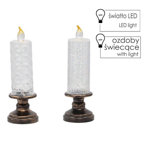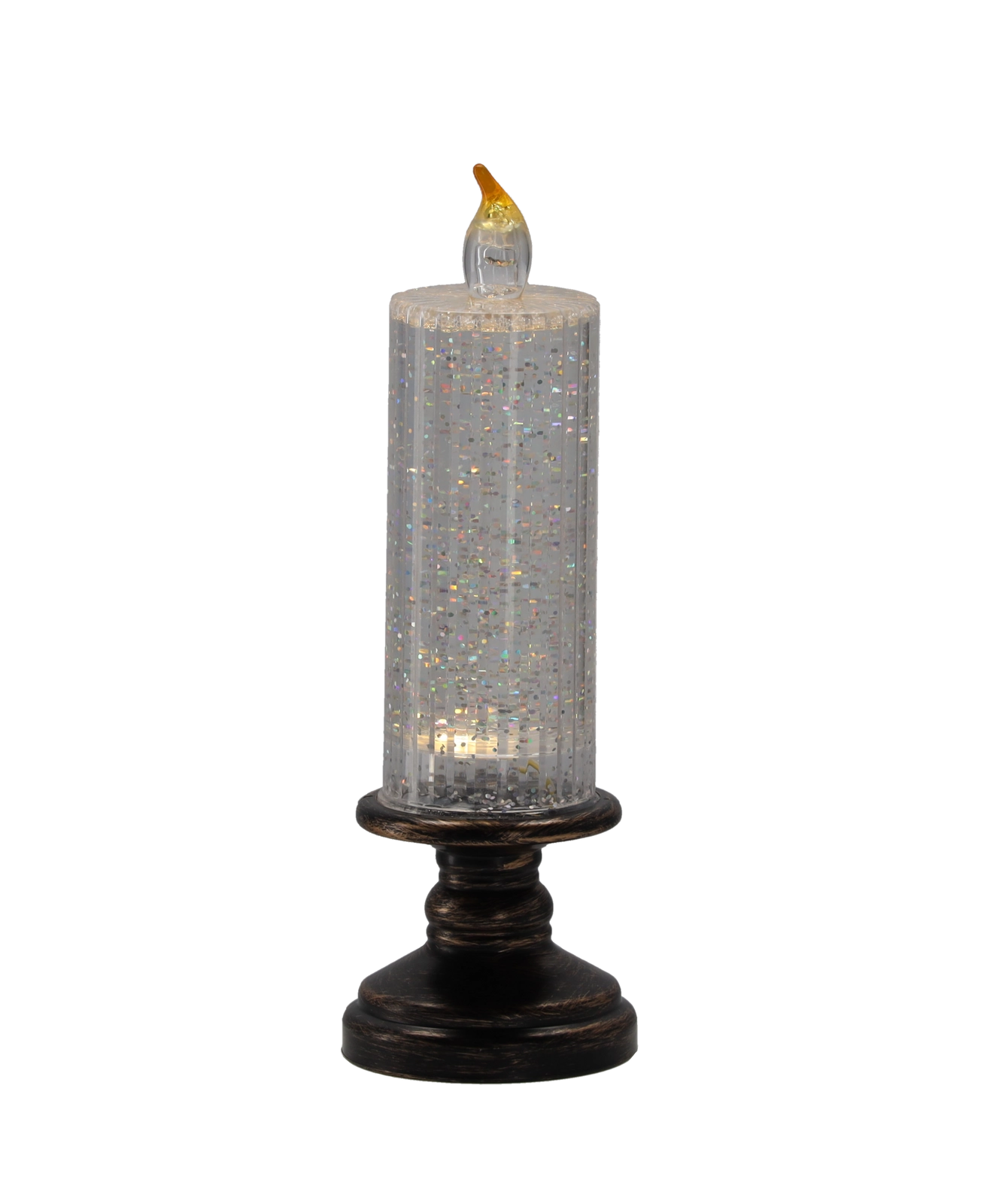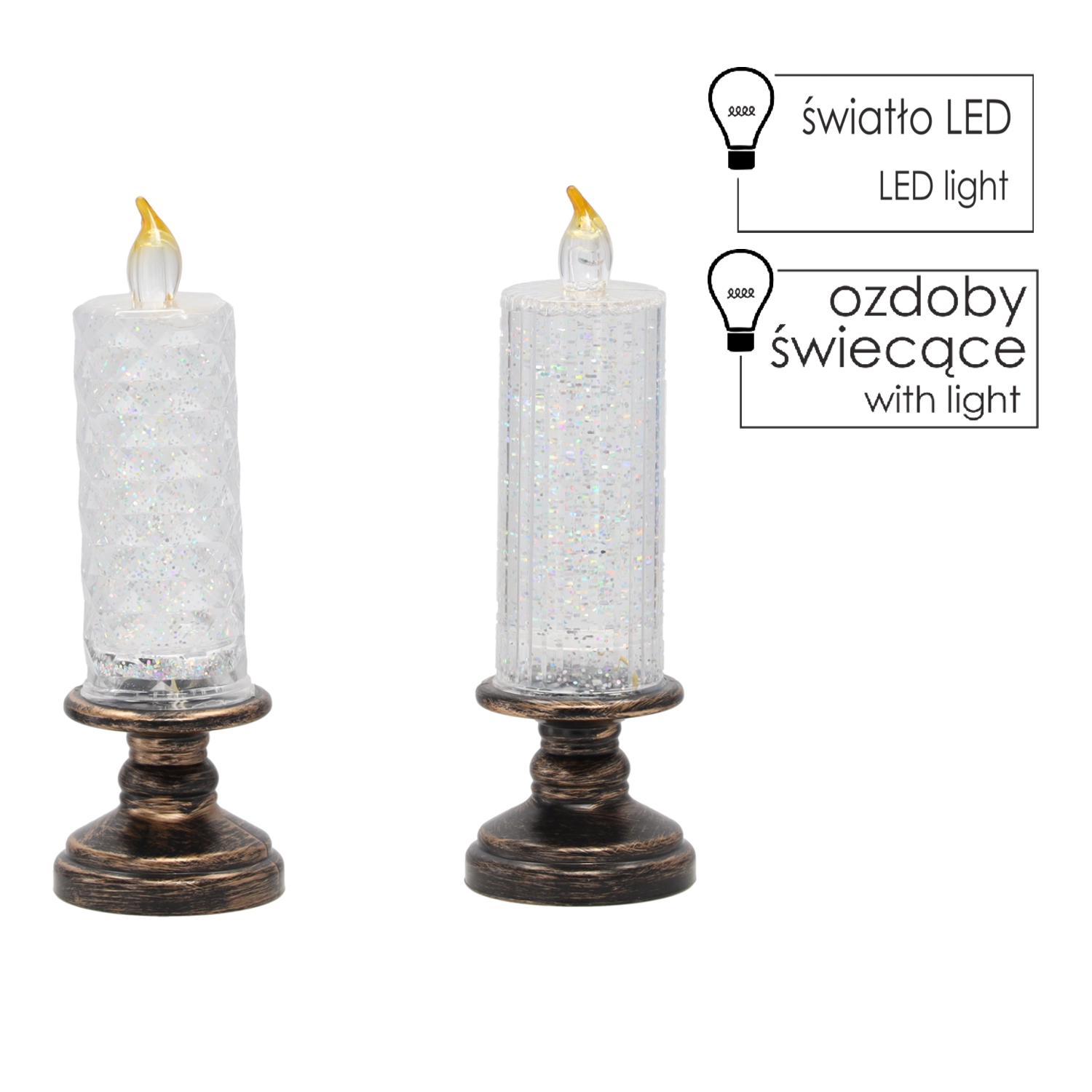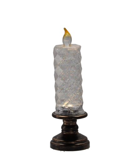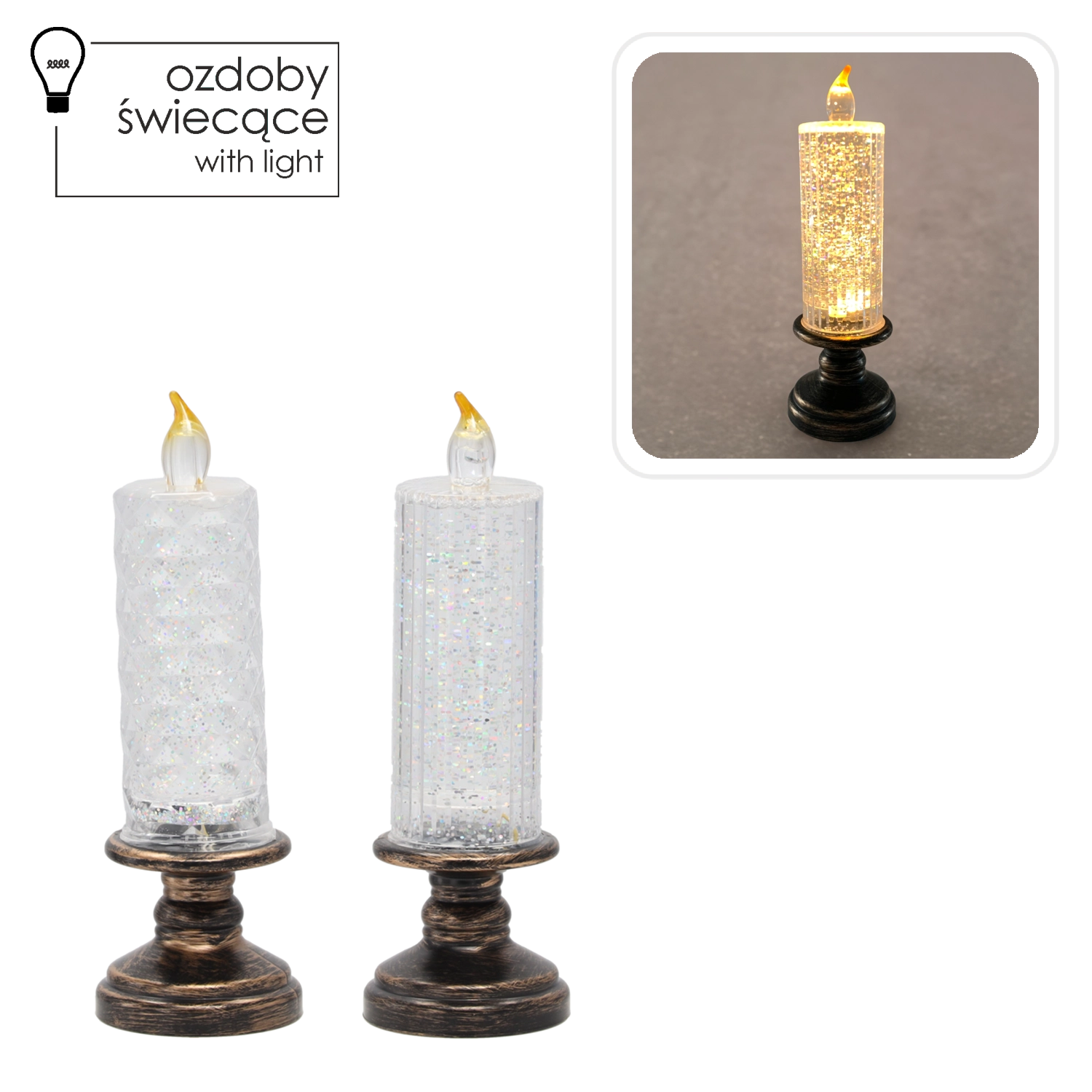 Deze elegante LED-kaars combineert de look van een klassieke kaars met moderne LED-verlichting. Het transparante lichaam met glitters licht op bij inschakeling en creëert een betoverend fonkeleffect dat je interieur een feestelijke én het hele jaar door charme geeft. Dankzij de compacte afmetingen is hij perfect voor het decoreren van tafel, plank of receptie.