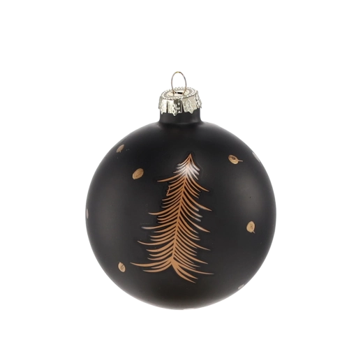 Ontdek de charme van minimalistische elegantie. Zwarte glazen ballen met subtiele gouden motieven en zowel matte als glanzende afwerkingen brengen een luxueuze feestelijke sfeer in je interieur. Dankzij de zorgvuldige afwerking zijn de ornamenten visueel indrukwekkend en tegelijk duurzaam.