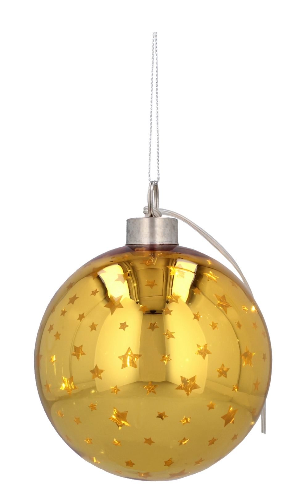 Breng de magie van Kerst in huis met hoogwaardige glazen ballen met gouden sterretjes en geïntegreerde LED-verlichting. Het glanzende oppervlak met sterrenmotief weerkaatst het licht en versterkt de feestelijke sfeer in zowel moderne als klassieke interieurs.