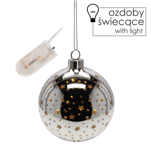 Deze stijlvolle glazen kerstdecoratie in moderne zilverkleur met fonkelende sterretjes is ideaal voor het versieren van de kerstboom, kransen en de feesttafel. De geïntegreerde LED’s schijnen subtiel door de sterrenmotieven en creëren een indrukwekkend lichteffect zonder opwarming en met een laag energieverbruik.