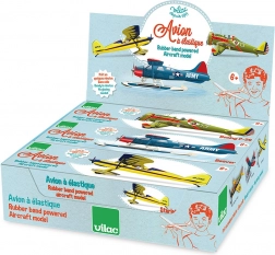 Een paar keer draaien en het vliegtuig is klaar voor de start. De elastiekaandrijving zorgt voor een dynamische take-off en herhaalbaar speelplezier zonder batterijen.