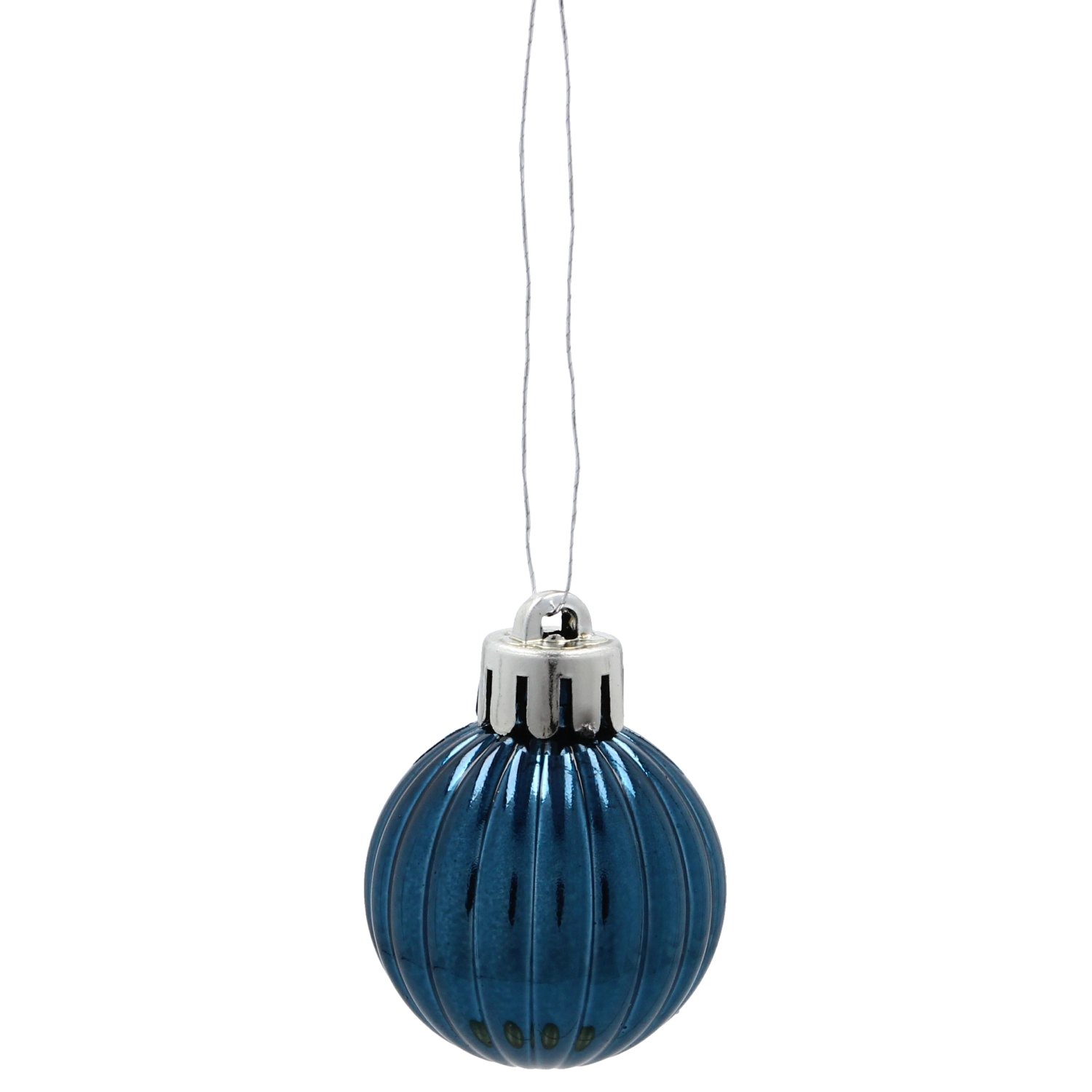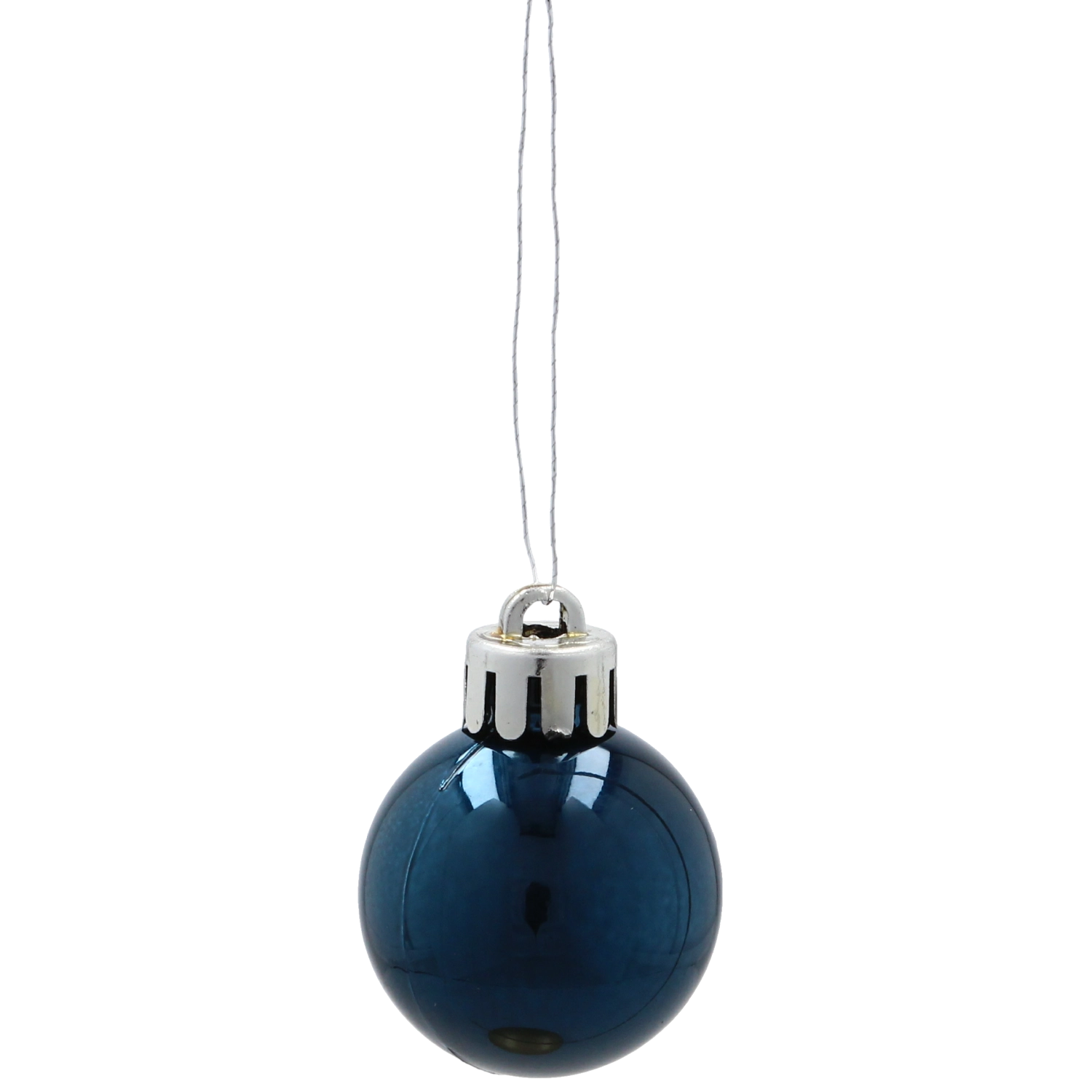 Creëer een harmonieuze en trendy feestdecoratie met deze compacte set ornamenten, die dankzij de diameter van 3 cm prachtig zowel hoofdaccenten als fijnere takjes aanvullen. De combinatie van donkerblauw en wit uit de collectie Winterblauw oogt zuiver, fris en sluit perfect aan bij moderne interieurs.