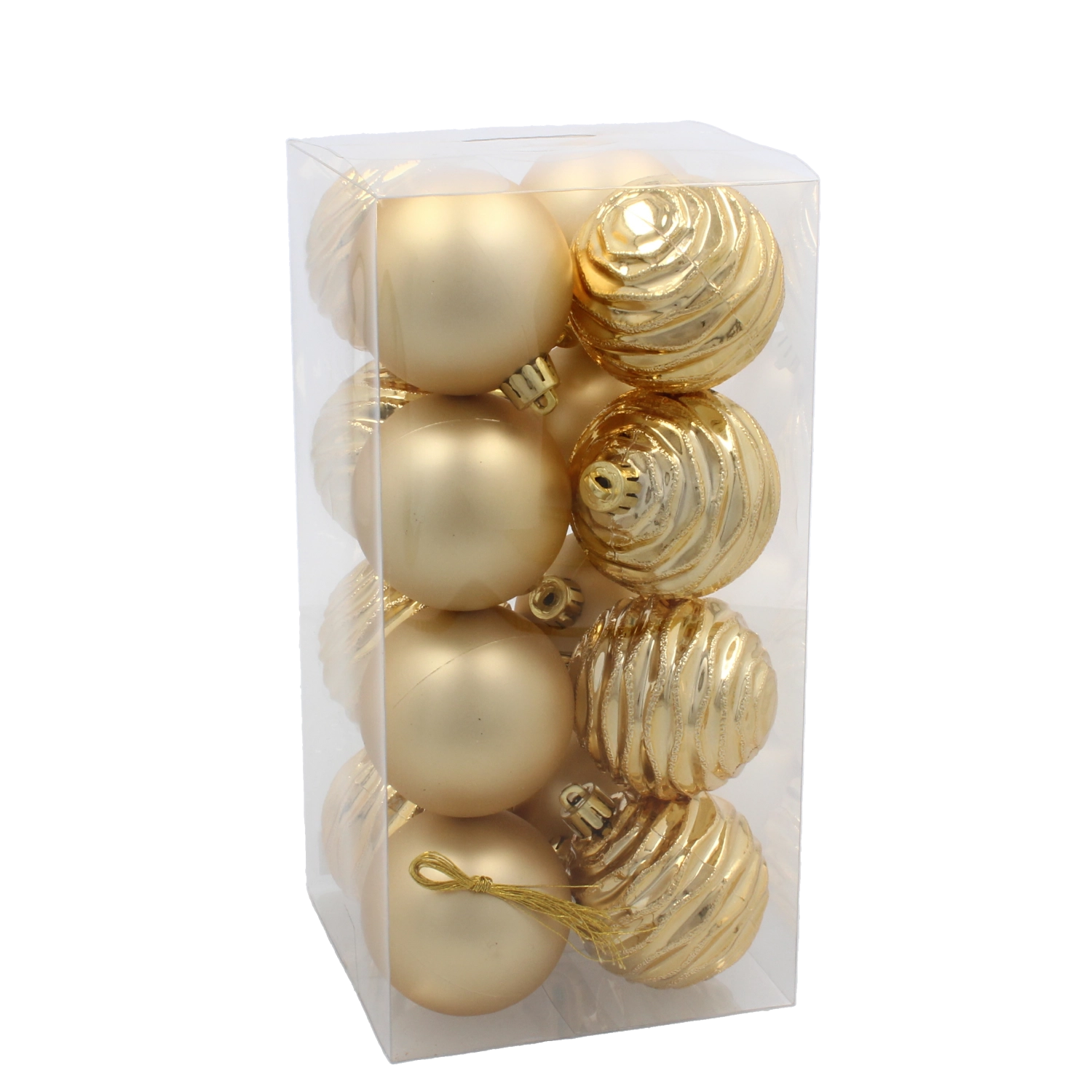Geef je boom een klassieke glans met een set van 16 kerstballen met een diameter van 6 cm in rood, goud en zilver. Duurzame kunststof en een glanzende afwerking zorgen voor prachtige lichtreflecties en een lange levensduur – ideaal voor bomen, kransen, guirlandes en andere decoraties.