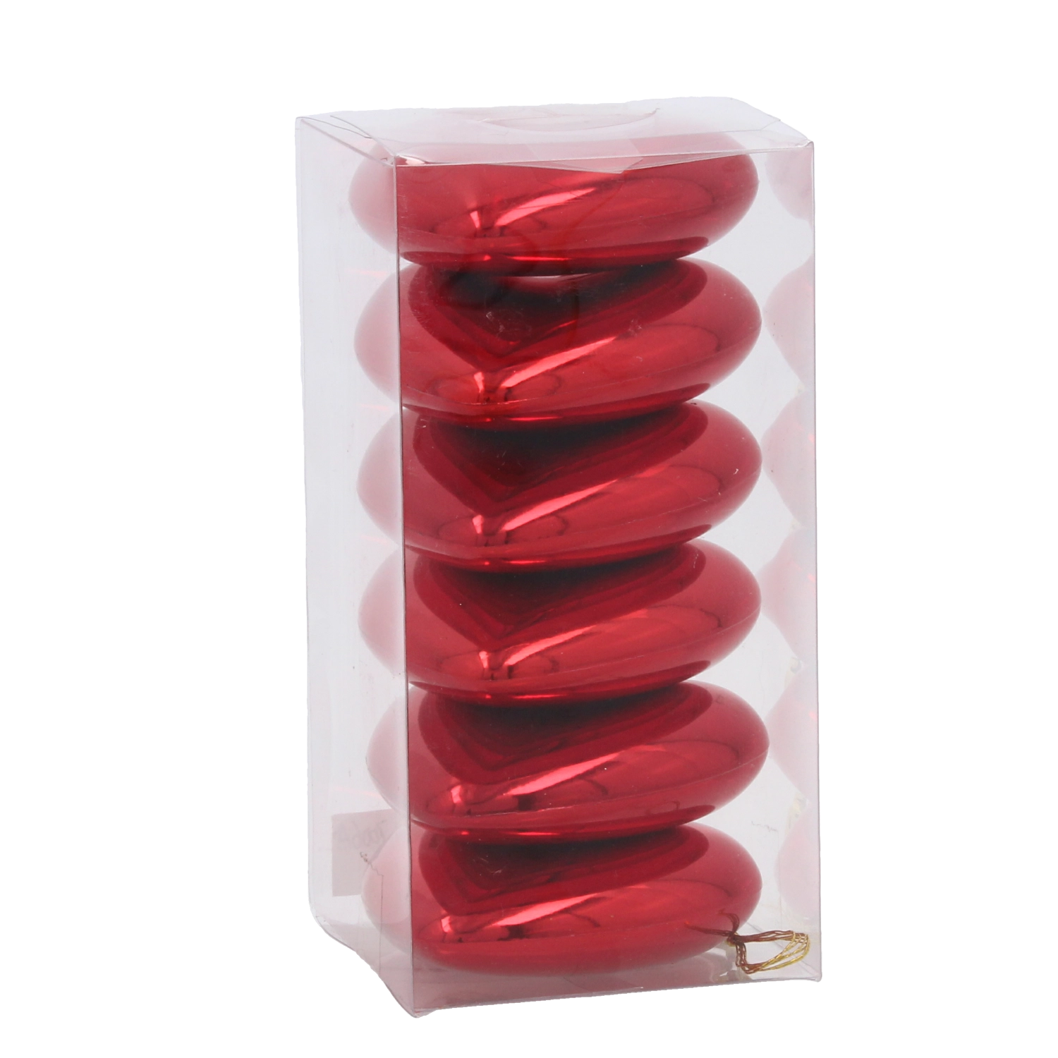 Deze elegante set van zes hartvormige ornamenten in traditionele kleuren laat je kerstboom en seizoensdecoraties stralen. De precieze afwerking en de mix van mat en glans creëren een harmonieuze en feestelijke look die perfect past bij zowel klassieke als moderne versieringen.