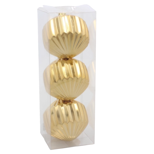 Verfijn je kerstdecor met de tijdloze combinatie van rood, goud en zilver. Het glanzende geribbelde oppervlak weerkaatst prachtig het licht en zorgt voor een sprankelend effect in de boom, aan guirlandes en op kransen. Dankzij de lichte en duurzame kunststof constructie zijn de ballen eenvoudig te plaatsen en belasten ze de takken niet.