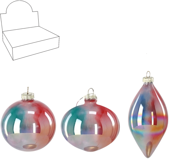Creëer een feestelijke sfeer met glazen kerstornamenten met een opaliserende glans, die het licht prachtig weerkaatsen en de magie van Kerst benadrukken. De combinatie van ronde en langwerpige vormen laat zich eenvoudig combineren met andere decoratie en zorgt voor een elegante, moderne uitstraling.