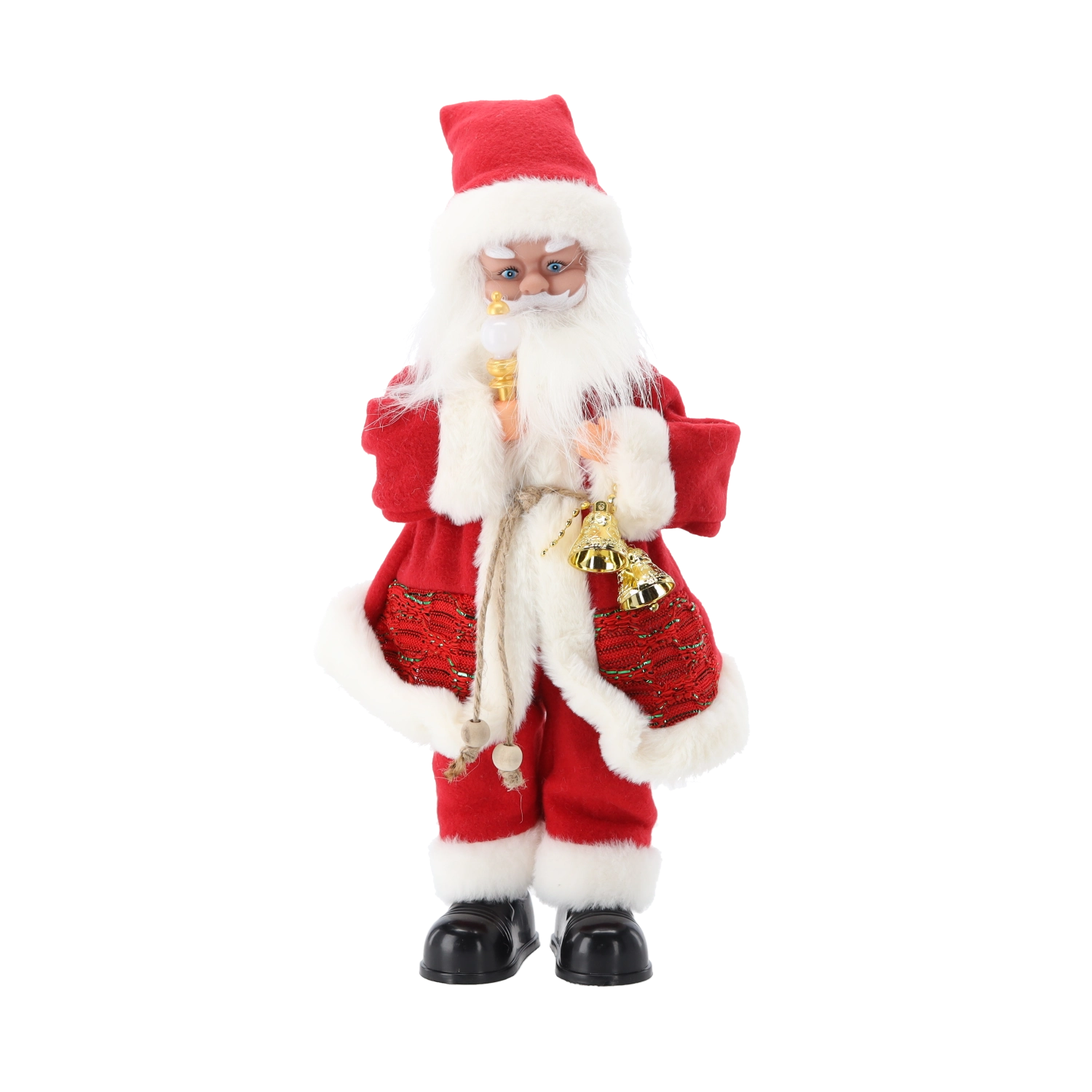 Gedetailleerde baard, kostuum met witte bies en accessoires. Staat stabiel op een vlak oppervlak – ideaal op een dressoir of onder de boom.