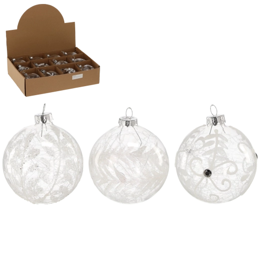 Elegante glazen kerstbal met een diameter van 8 cm in transparante uitvoering, geeft de boom en het interieur een tijdloze glans en subtiele elegantie. Dankzij de mix van patronen eenvoudig te combineren met elke stijl van decoratie, van klassiek tot modern. Hoogwaardig glas zorgt voor een lange levensduur en bestendigheid tegen beschadiging, ideaal voor gebruik binnenshuis.