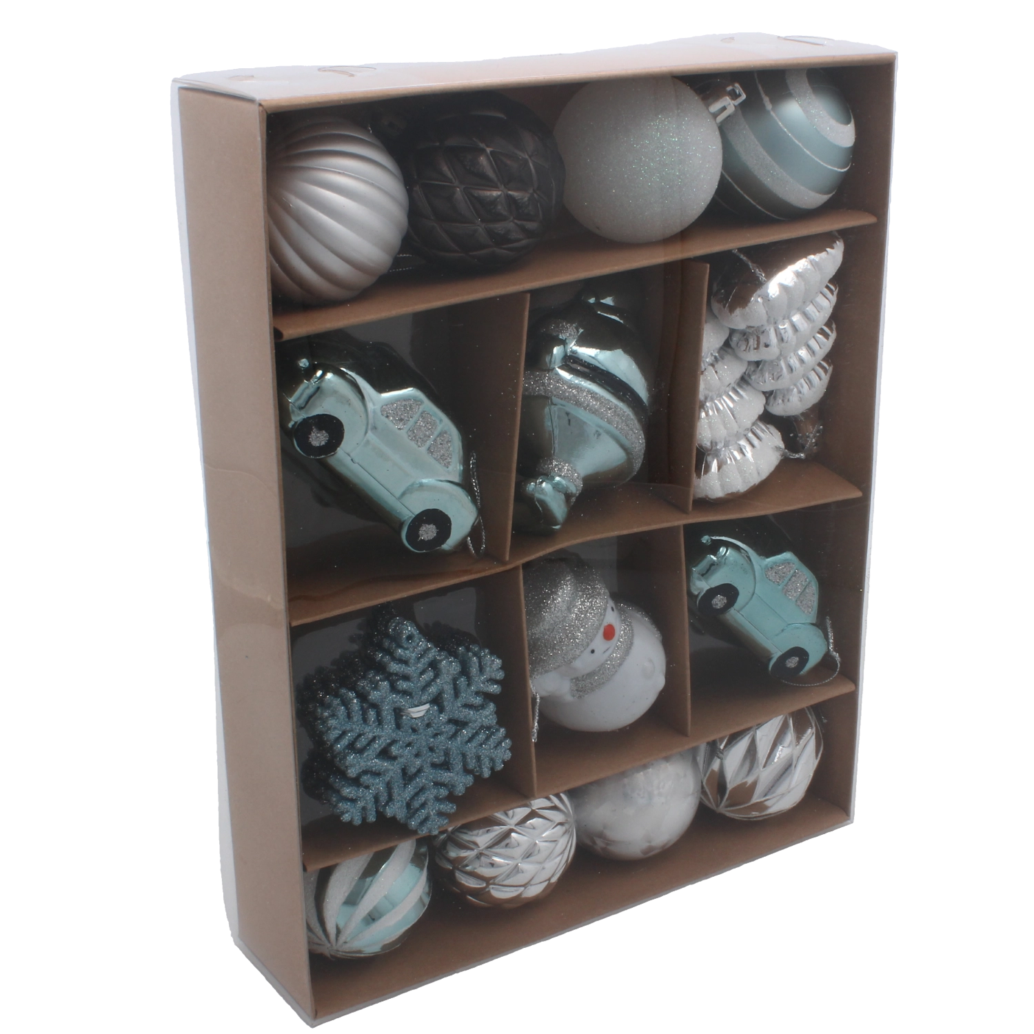 Ronde ballen, sneeuwvlokken, figuurtjes en unieke vormen met matte, glanzende en glitterafwerking geven je decor een rijke, gevarieerde uitstraling.