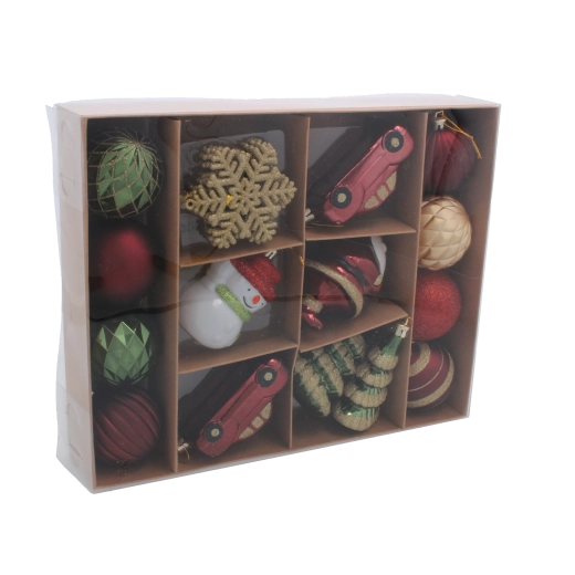Creëer een knusse, feestelijke sfeer met deze set van 20 ornamenten in elegante bruin- en bourgondtinten. De combinatie van klassieke ballen en traditionele motieven past perfect bij zowel een moderne als rustieke stijl en siert iedere kerstboom. Het lichte kunststof maakt decoreren gemakkelijk en verkleint het risico op breuk.