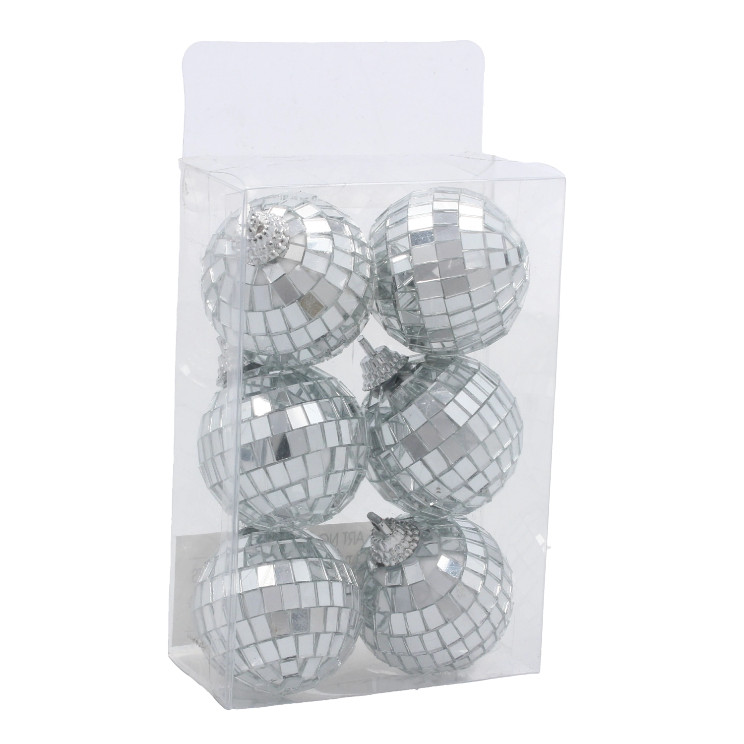 Geef je feestelijke decoratie een frisse glans met deze set van zes zilverkleurige ballen in disco-stijl. Het spiegelende effect weerkaatst het omgevingslicht en creëert een sprankelende sfeer die opvalt in de kerstboom, kransen en tafeldecoraties.