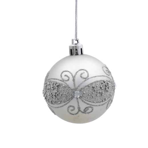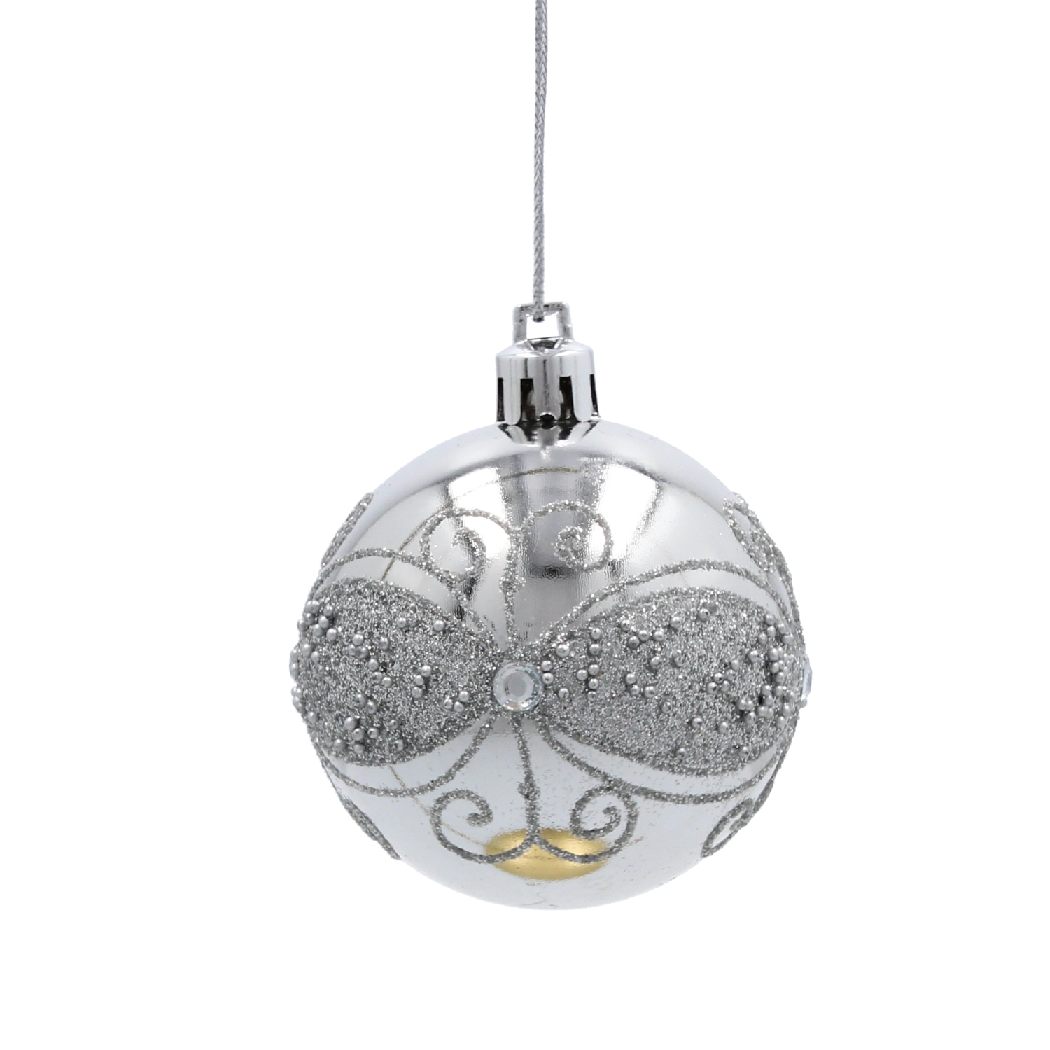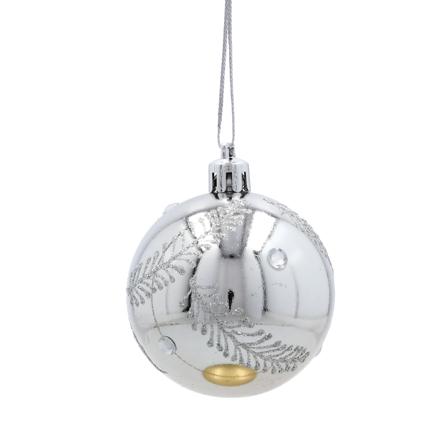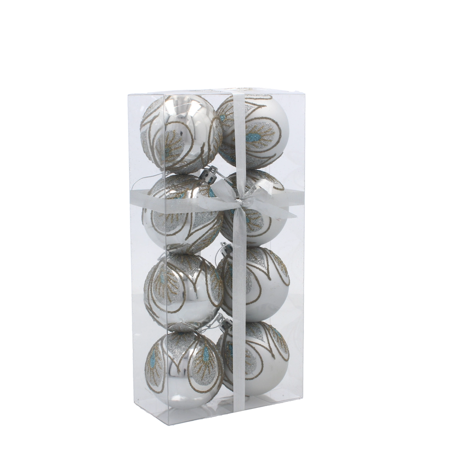 Geef je kerstboom een elegante en feestelijke uitstraling met een set van acht zilveren ballen met een diameter van 6 cm. De versieringen van lichtgewicht, onbreekbaar plastic zijn veilig voor kinderen en huisdieren en zorgen dankzij de verschillende patronen voor een harmonieuze en stijlvolle look in de boom. Eenvoudig te combineren met andere decoraties in zowel een traditioneel als modern thema.