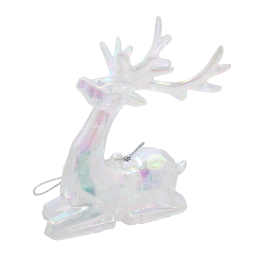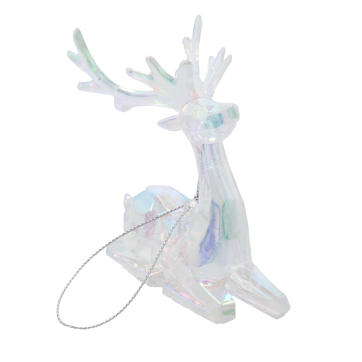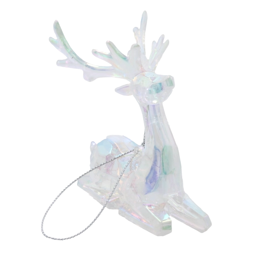 Geef je kerstdecoratie een subtiele glans met deze rendiervormige hanger, gekenmerkt door een facetgeslepen, iriserend oppervlak. Dankzij de zorgvuldige afwerking en details oogt hij elegant en creëert hij prachtige kleurrijke reflecties in de boom en in het licht van kaarsen of LED-slingers.