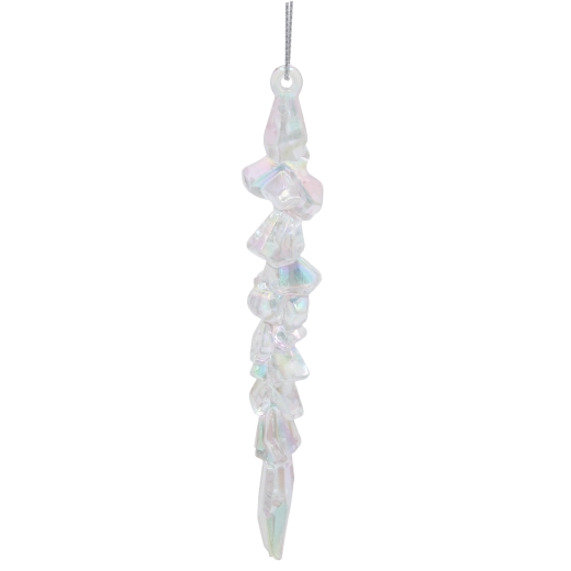 Elegante kerstversiering in de vorm van een ijspegel van 15 cm met een opaliserend oppervlak dat de boom een ijzige glans geeft. Licht en duurzaam kunststof is veilig voor huishoudens met kinderen en dankzij het koordje voor eenvoudig ophangen plaats je het aan de boom, kransen, slingers en in ramen.