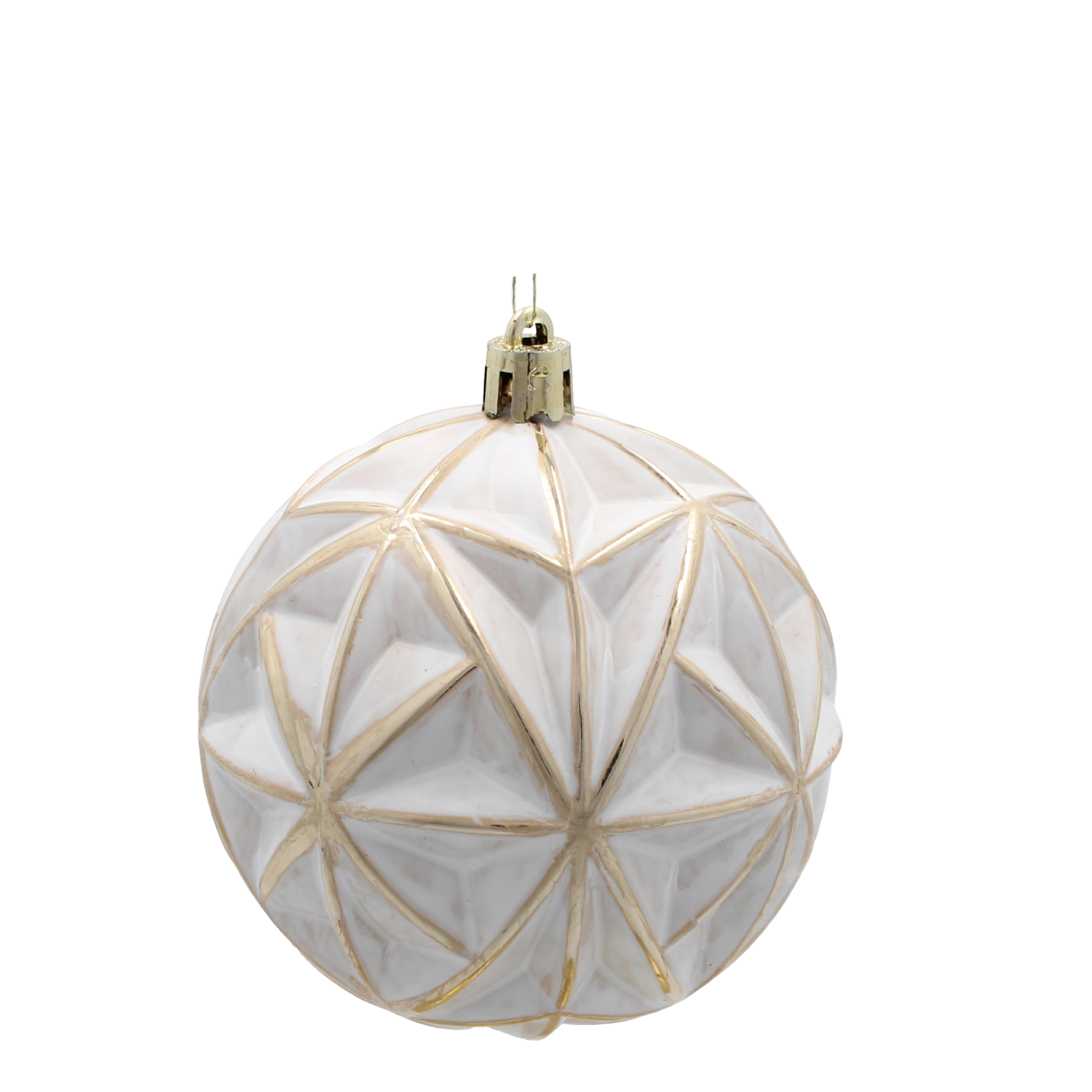Deze stijlvolle set kerstversieringen combineert zuiver witte en gouden tinten voor een harmonieuze, representatieve look. Dankzij de grotere diameter van 8 cm vallen de ballen goed op, zelfs in rijk versierde bomen, en trekken ze de aandacht met hun glans en gestructureerde details.