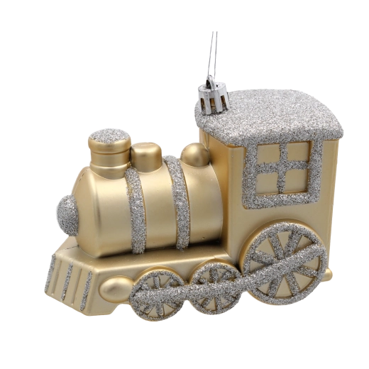 Geef je boom de magie van Kerst met een set van drie ornamenten in de vorm van een locomotief. Elk met een lengte van ca. 10 cm valt op door de elegante gouden kleur met glinsterende details, een lichte en duurzame kunststofconstructie en eenvoudig ophangen met de meegeleverde koordjes. Past perfect bij traditionele én moderne arrangementen en schittert prachtig in het licht van kerstlampjes.