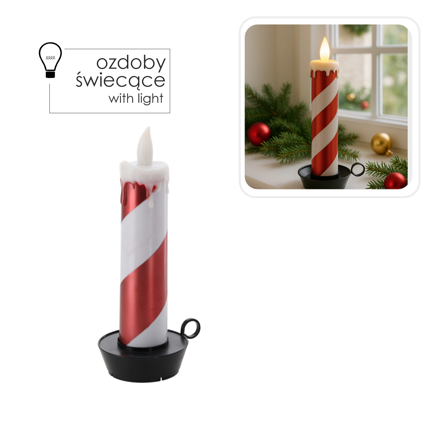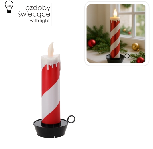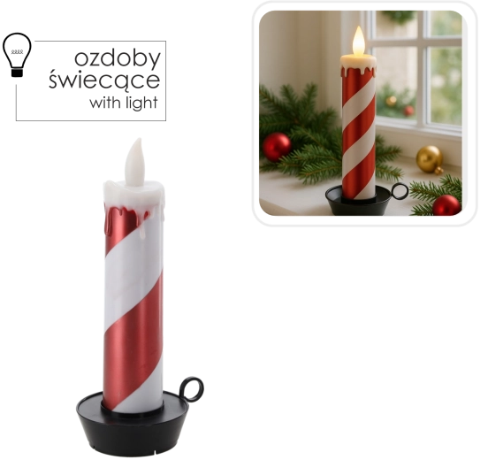Deze stijlvolle LED-kaars met wit-rode strepen in zuurstokdesign verlicht elk interieur. Het warme, flikkerende licht creëert een knusse sfeer zonder risico van open vuur en zonder rommel van druipende was.